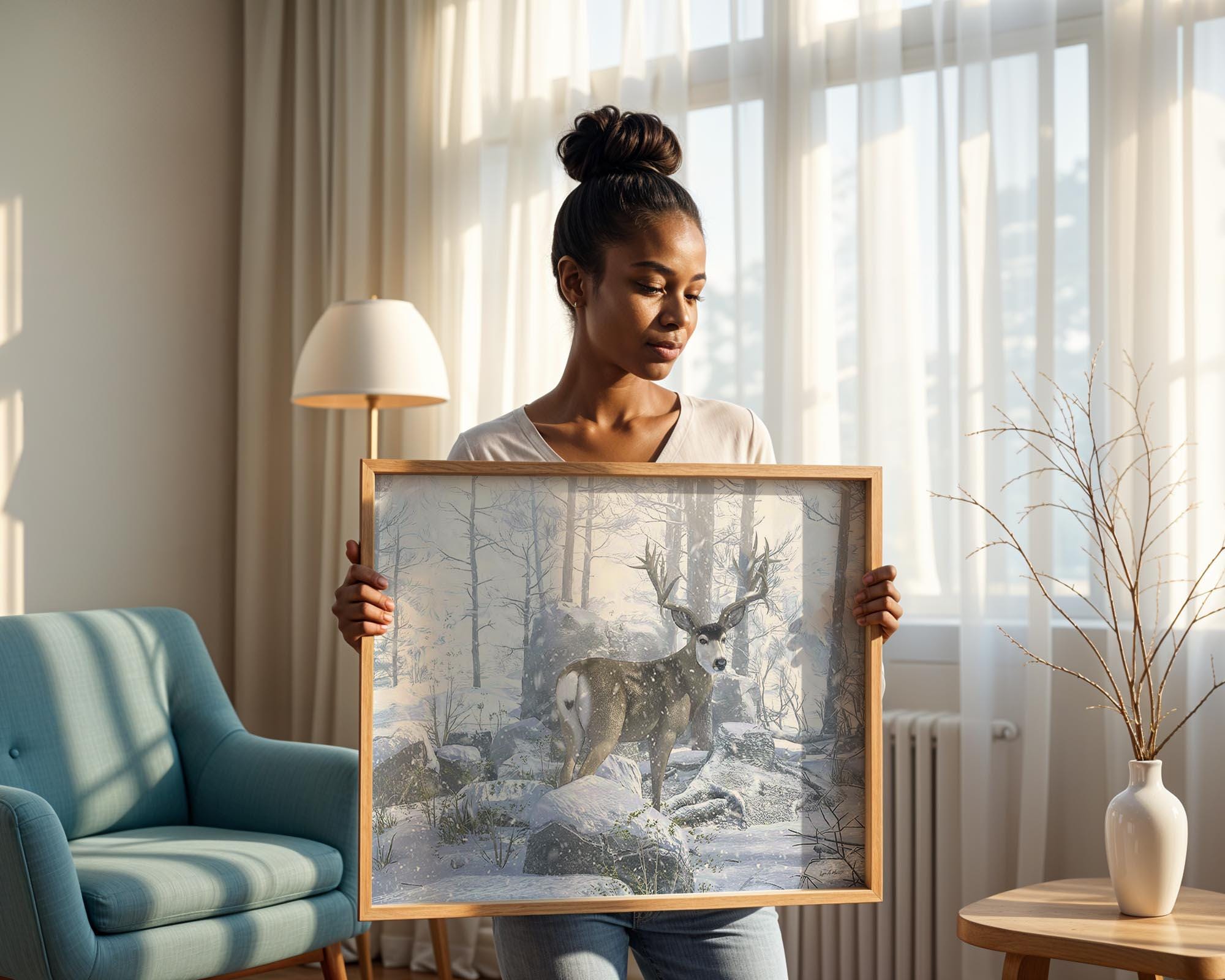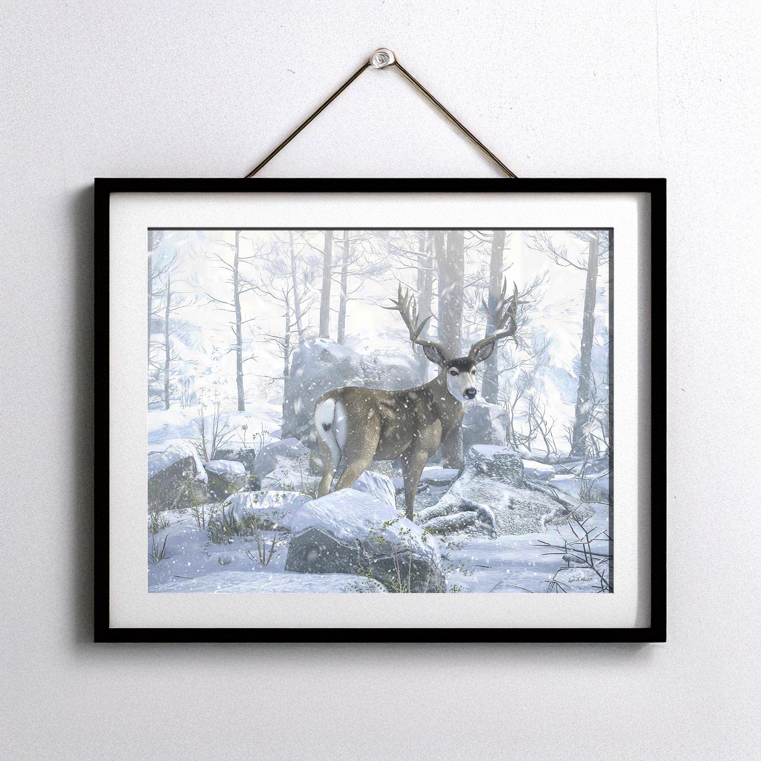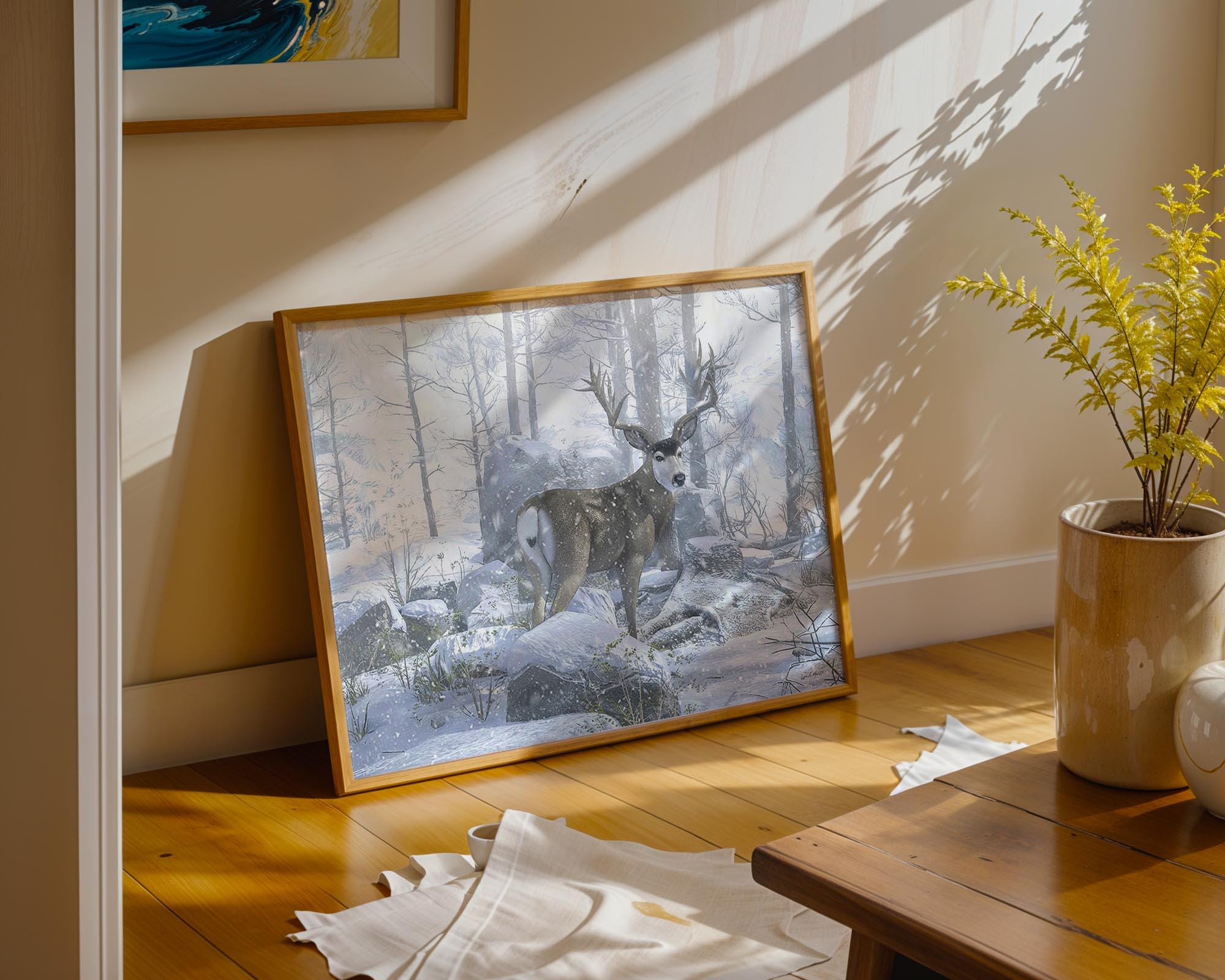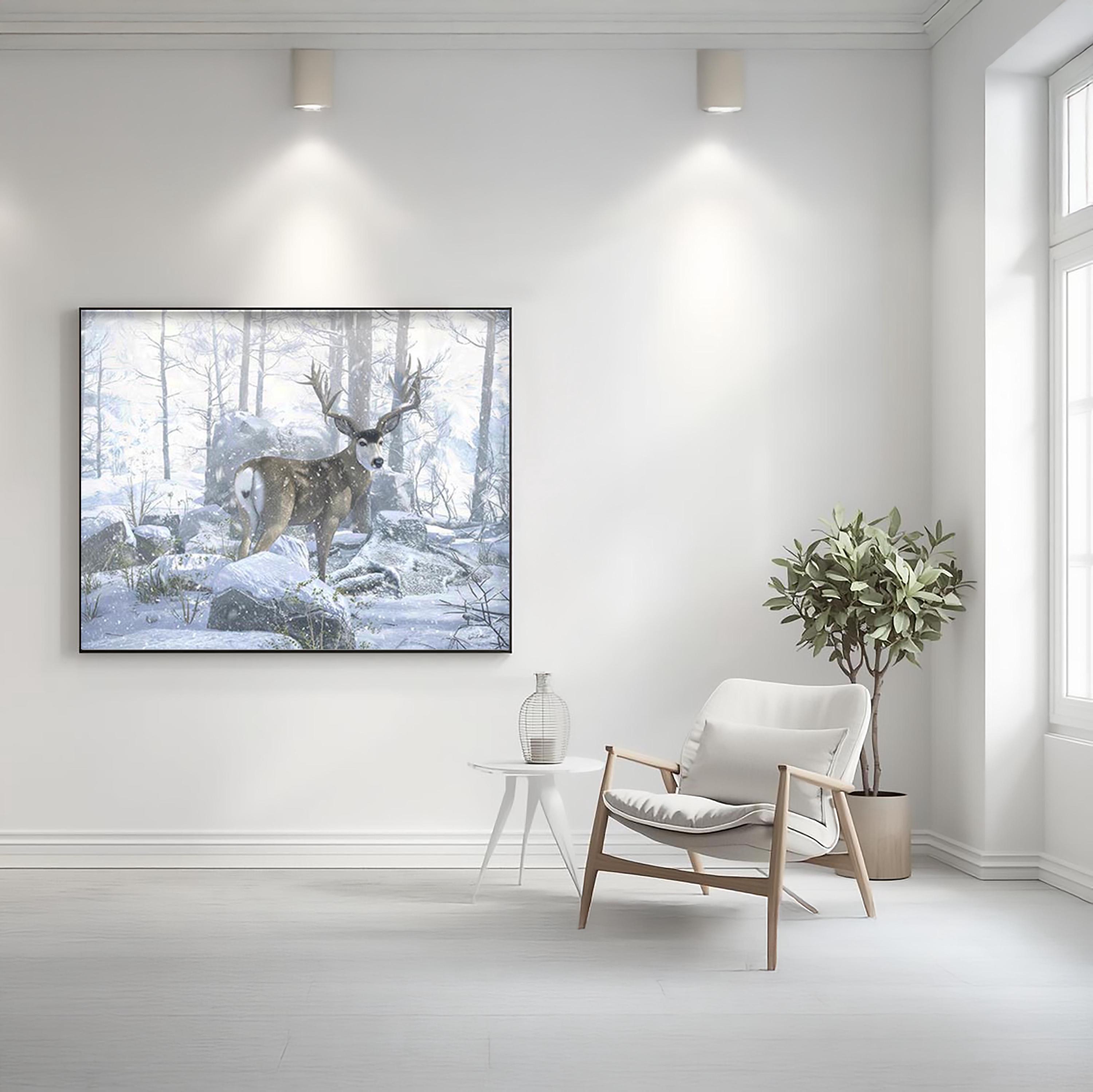 I created this artwork to capture the quiet beauty of winter and the strength of wildlife that thrives in it. The deer represents peace, resilience, and the calm stillness found in nature.