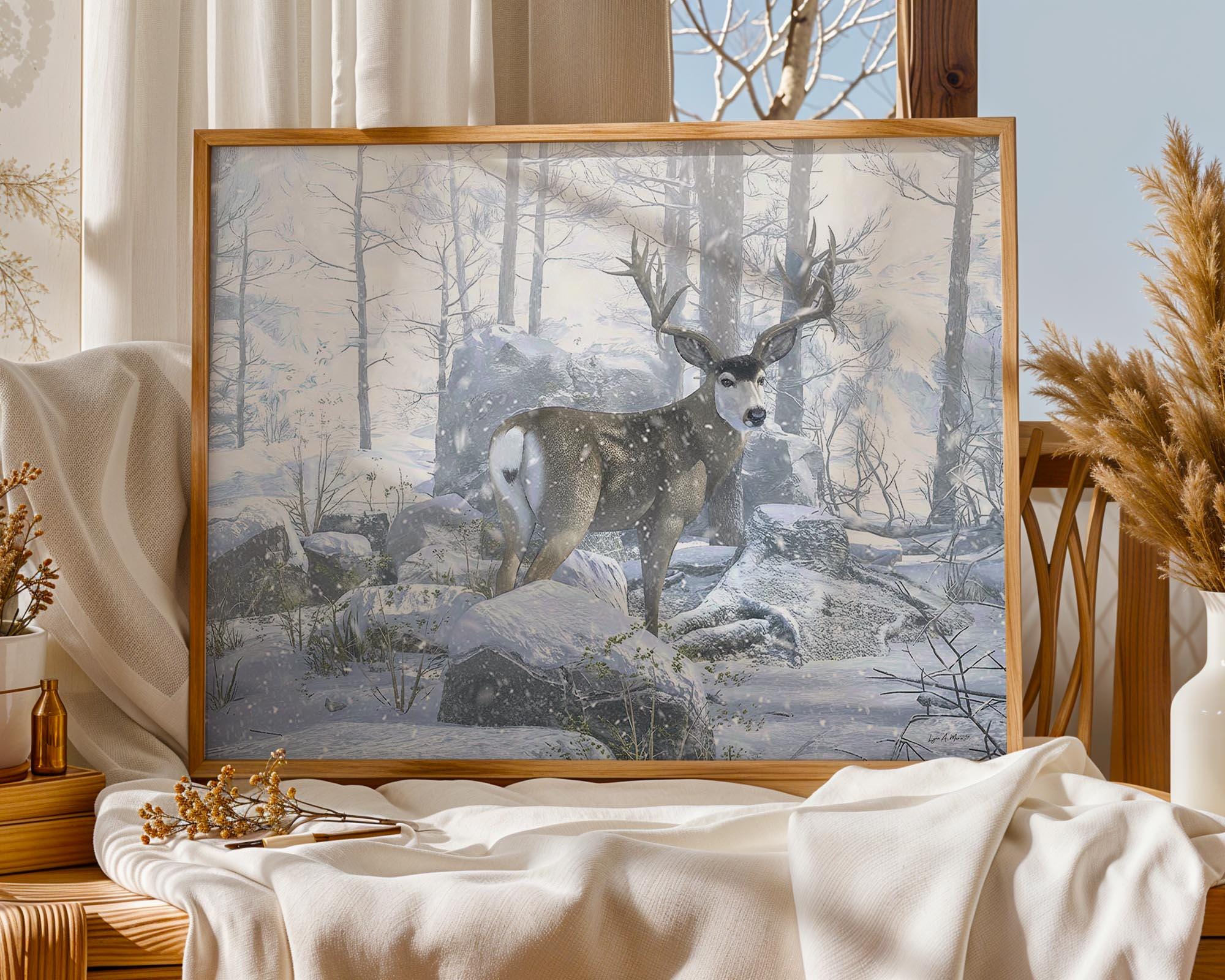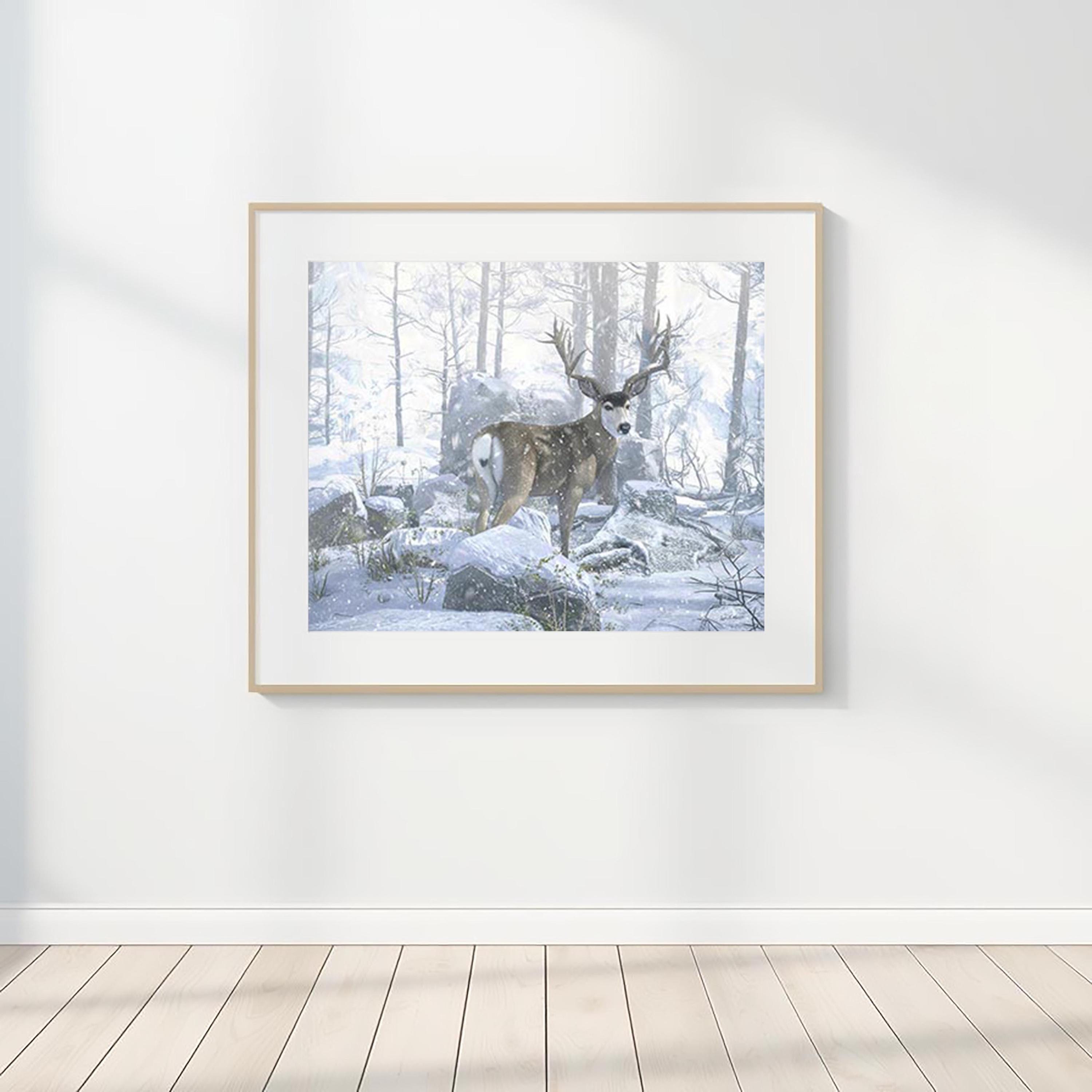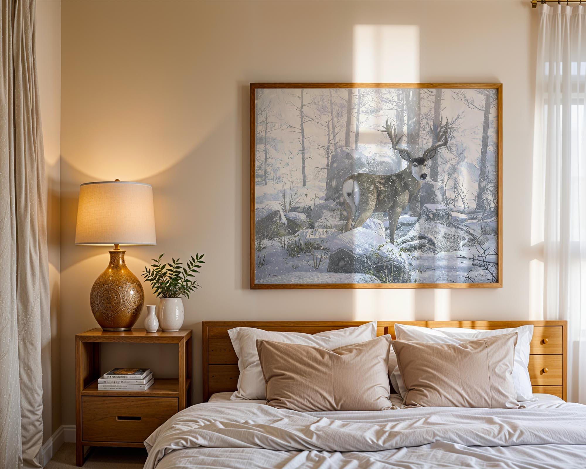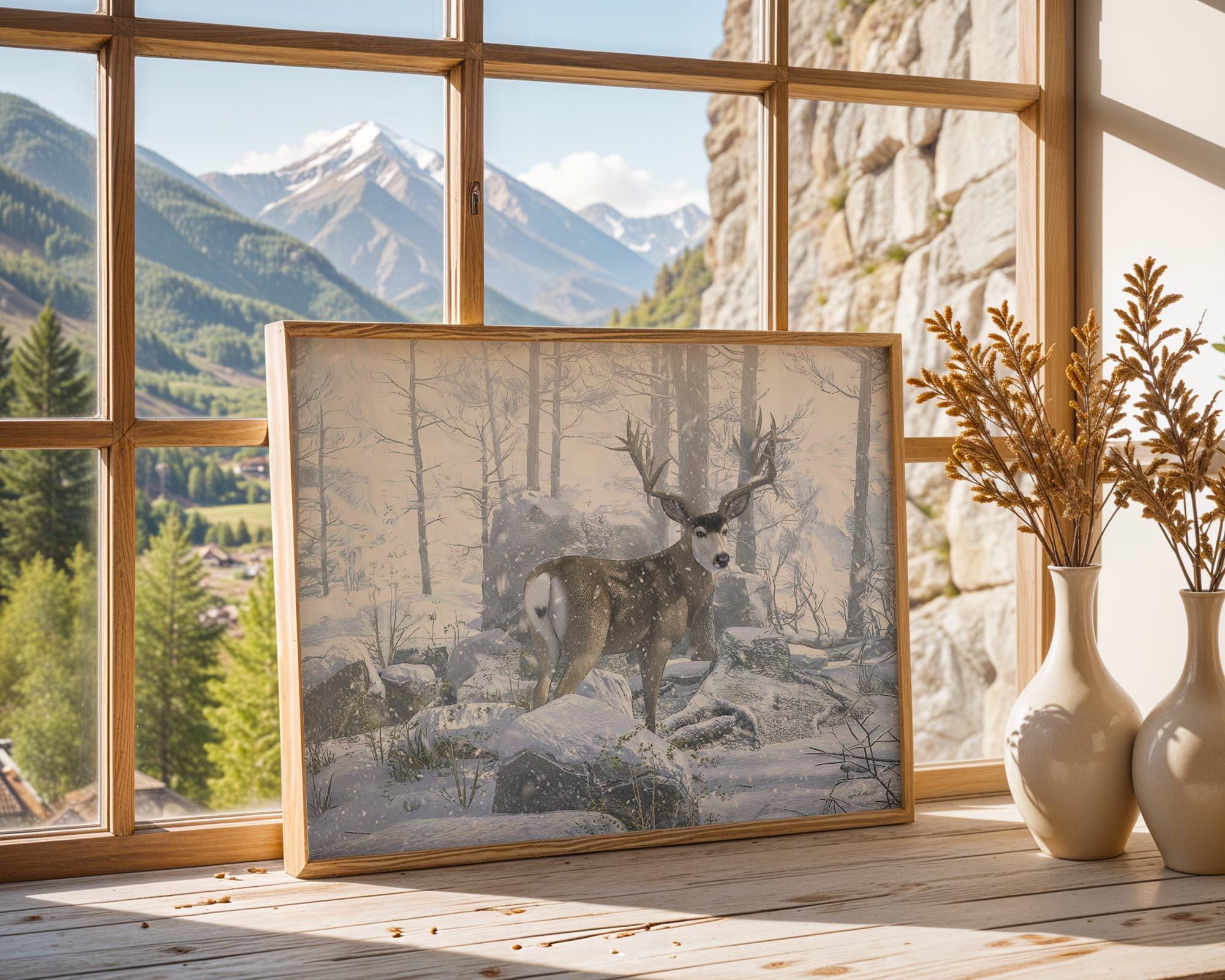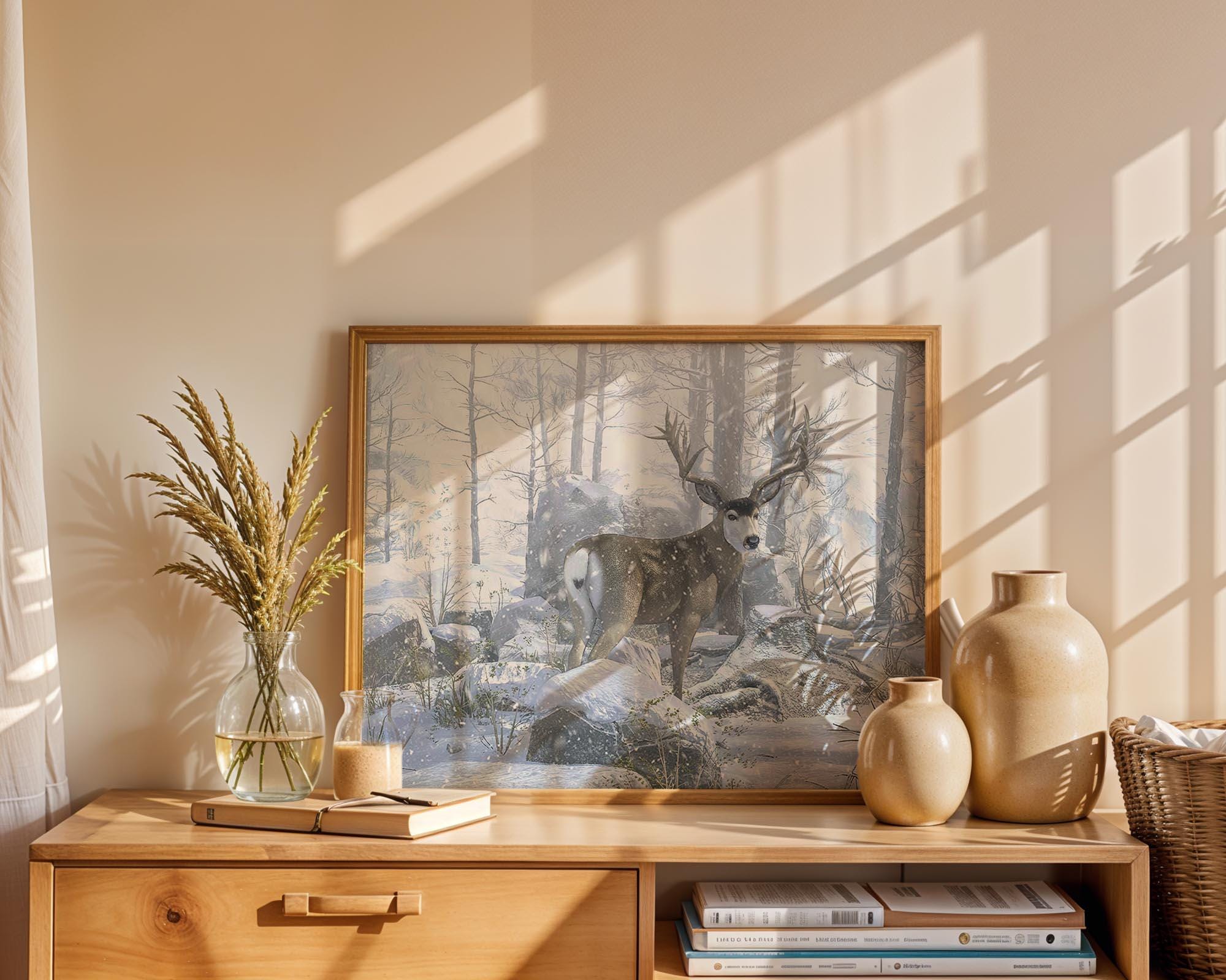 I created this artwork to capture the quiet beauty of winter and the strength of wildlife that thrives in it. The deer represents peace, resilience, and the calm stillness found in nature.