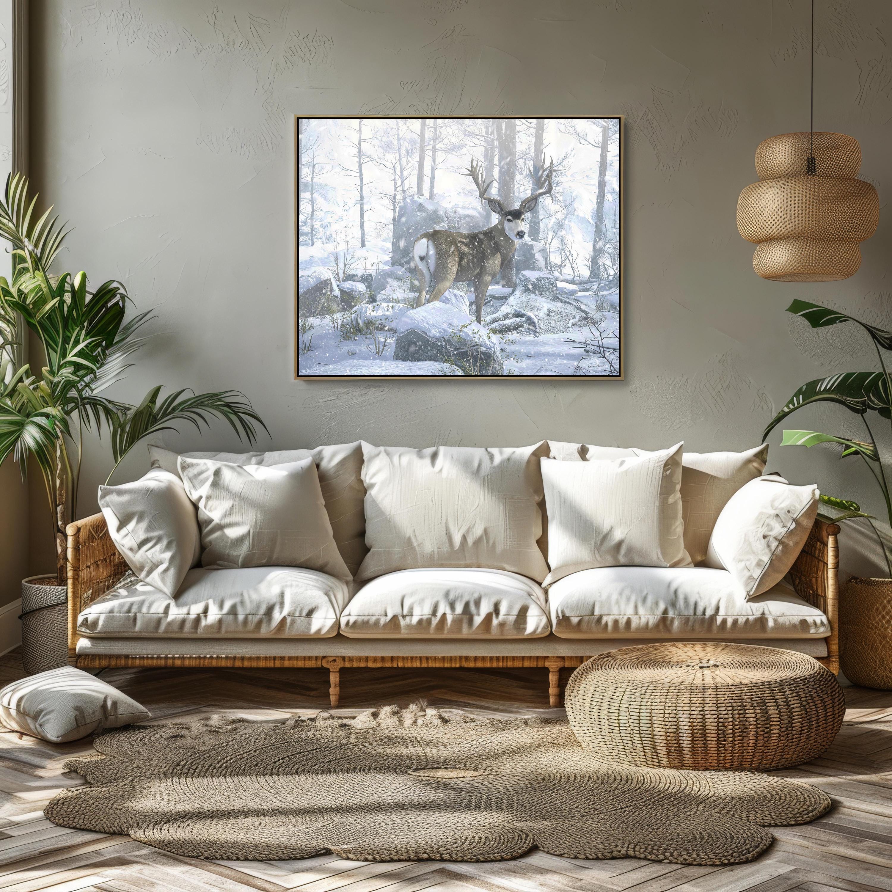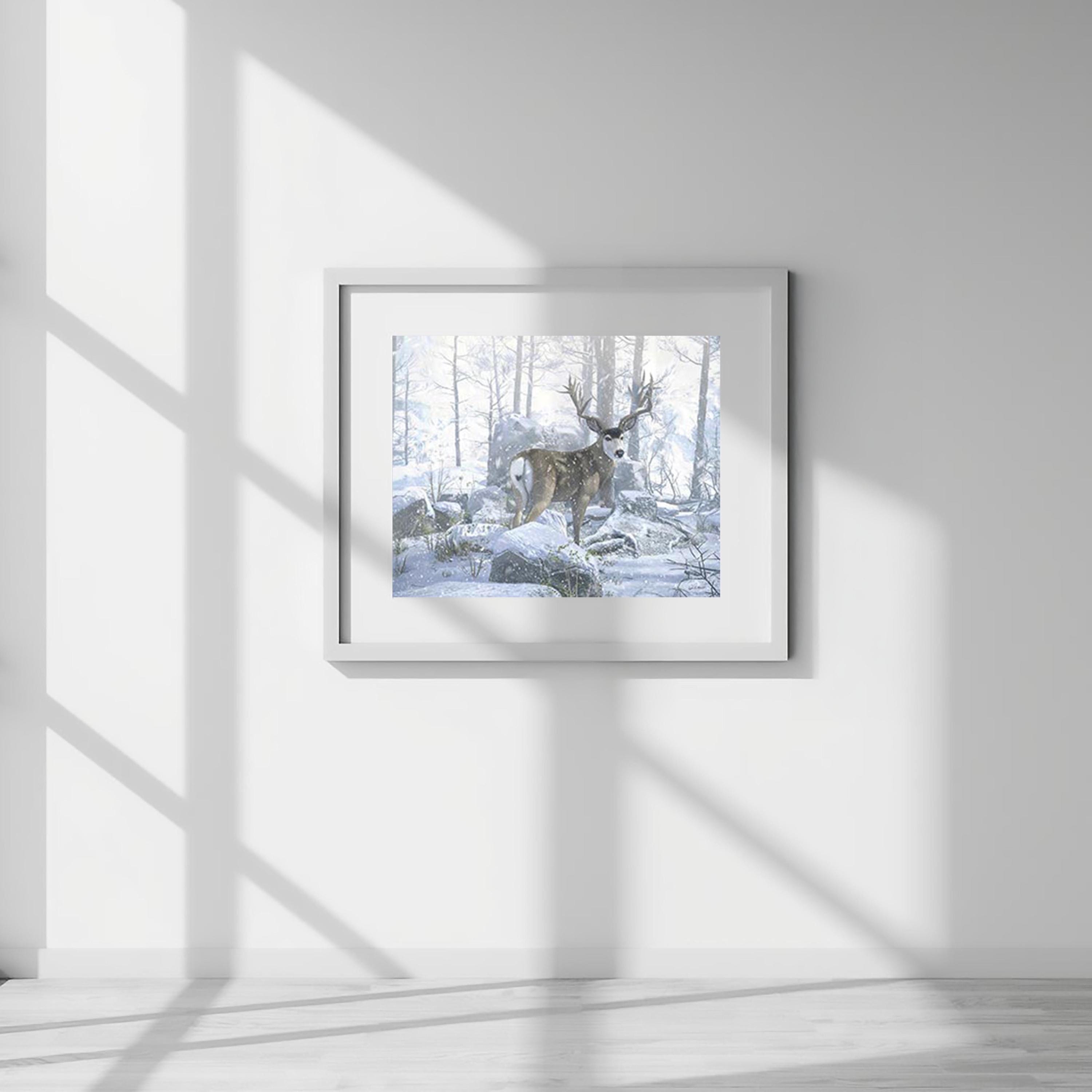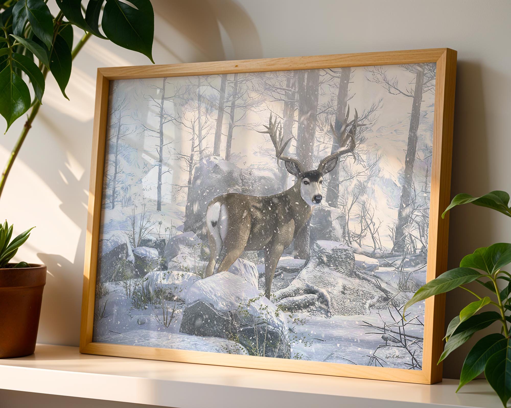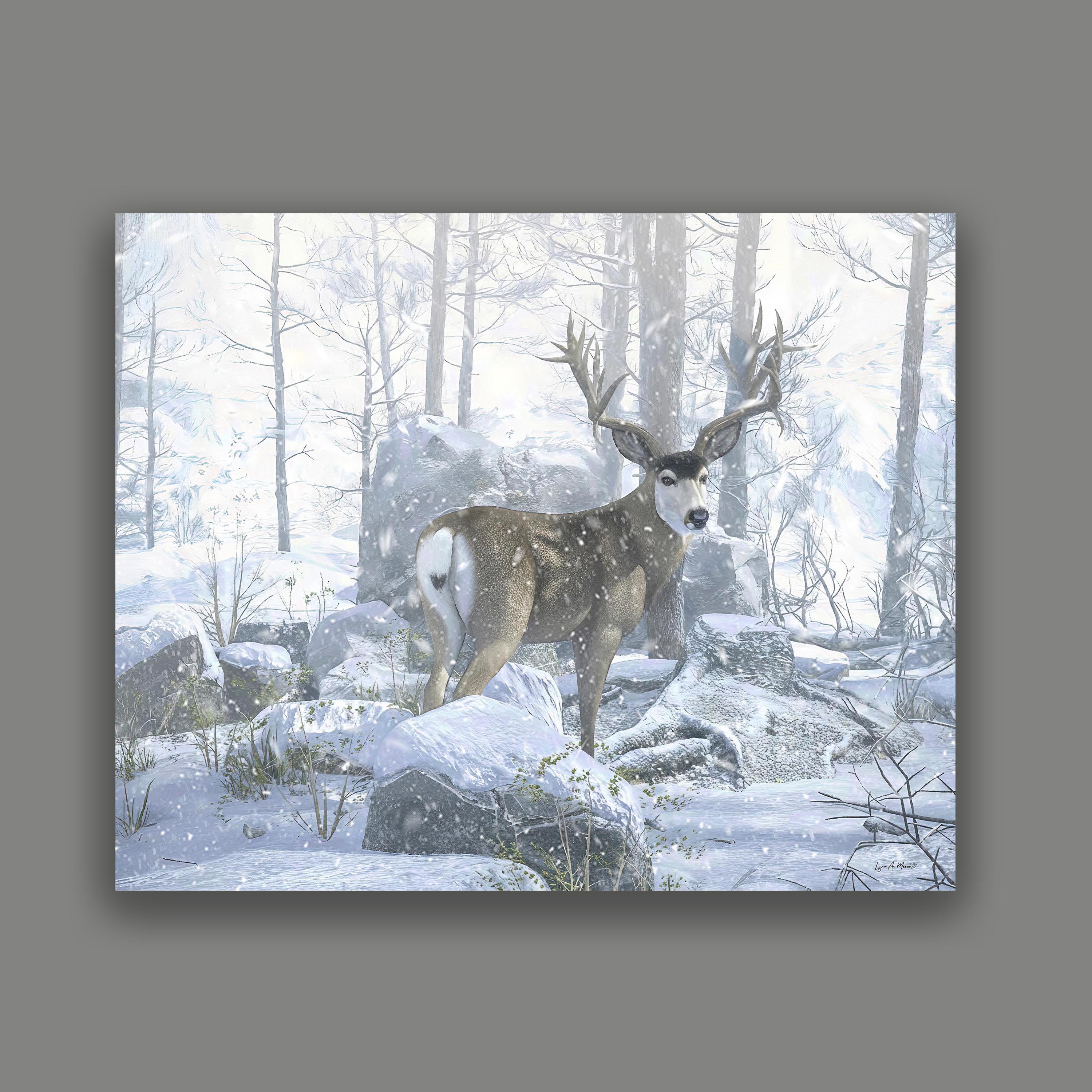I created this artwork to capture the quiet beauty of winter and the strength of wildlife that thrives in it. The deer represents peace, resilience, and the calm stillness found in nature.