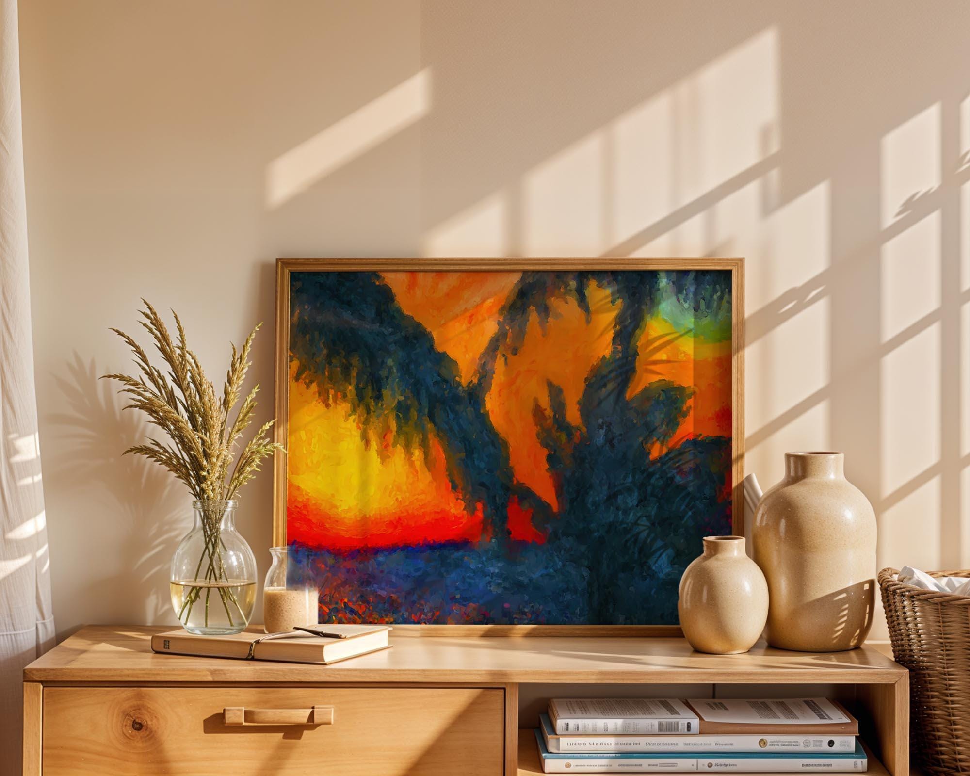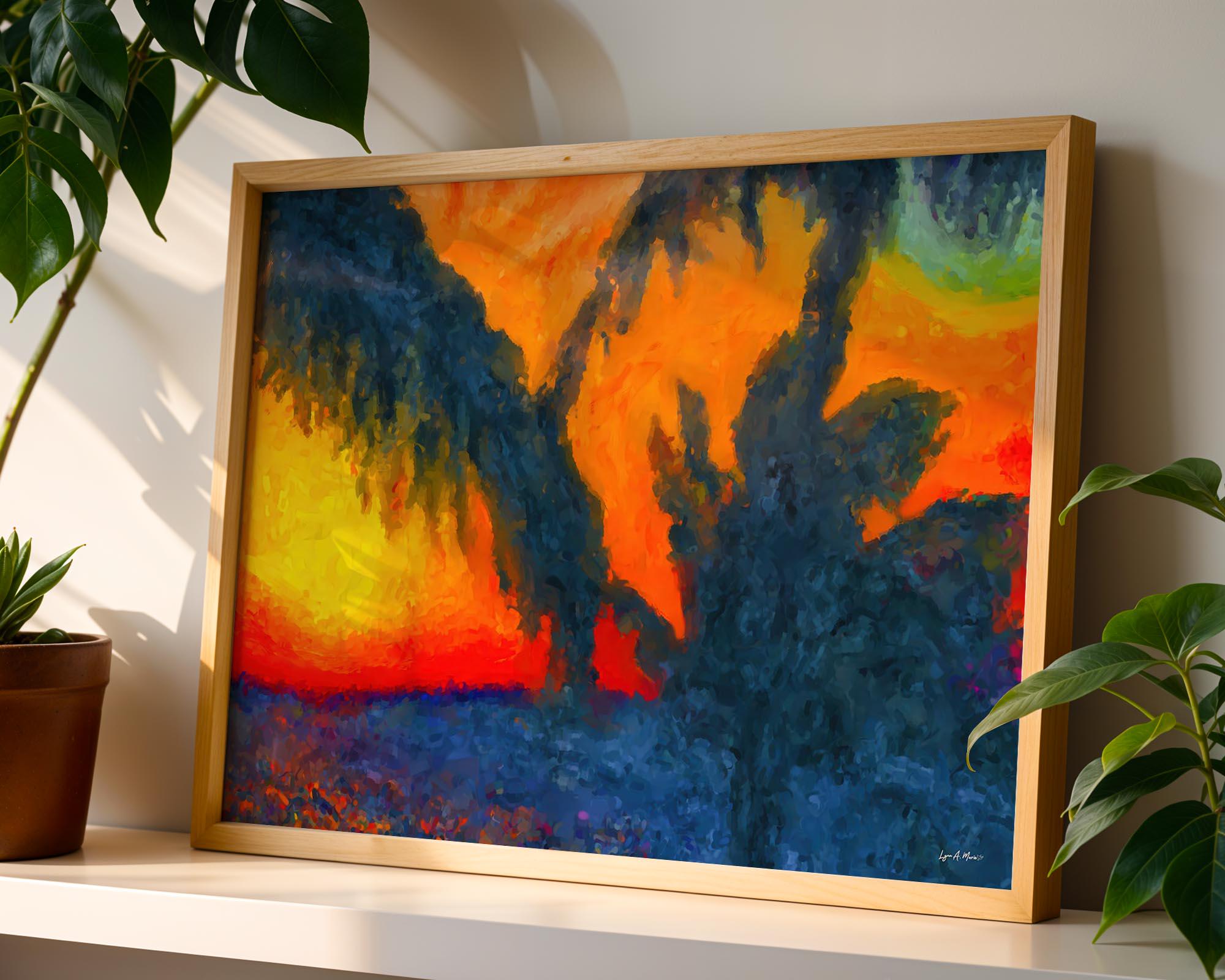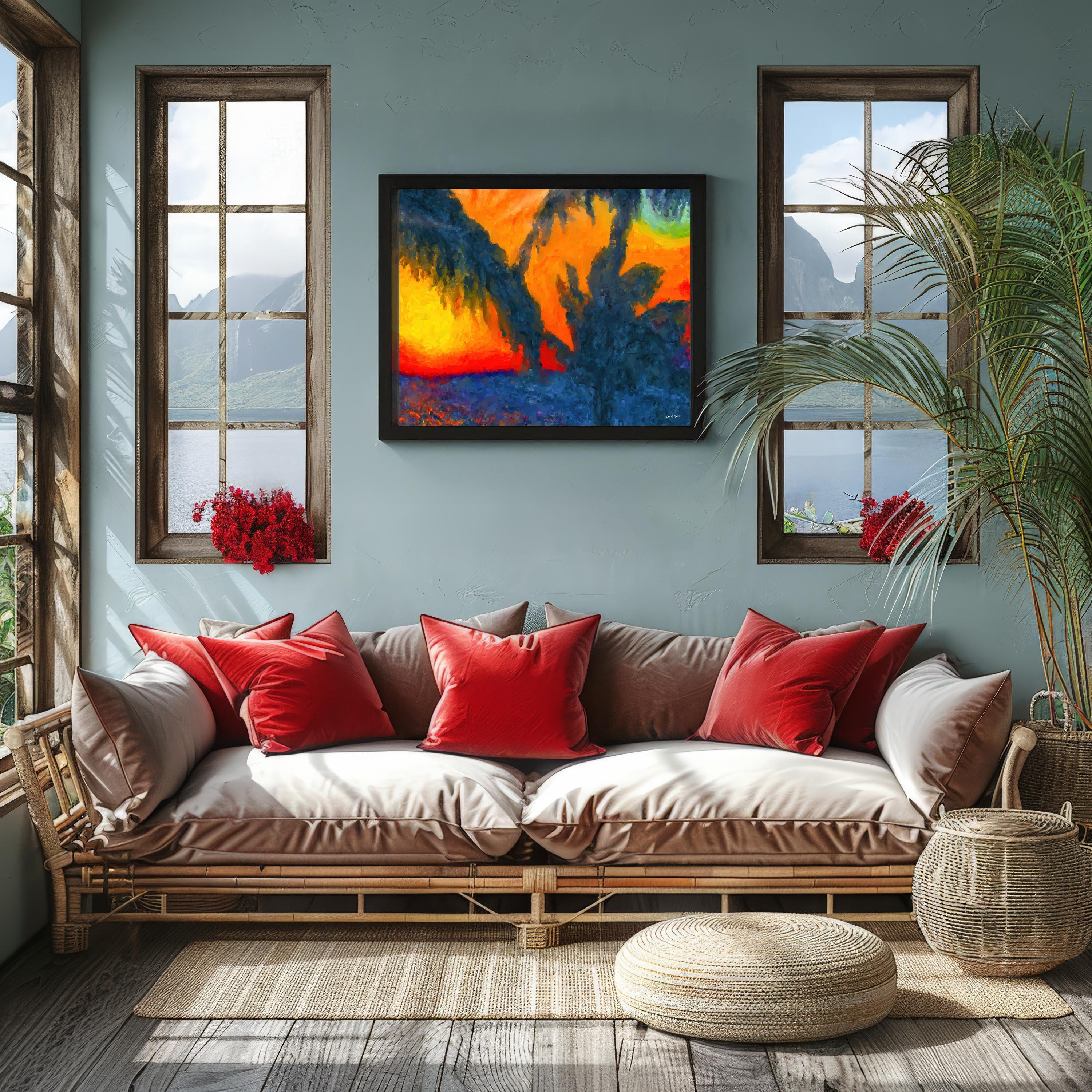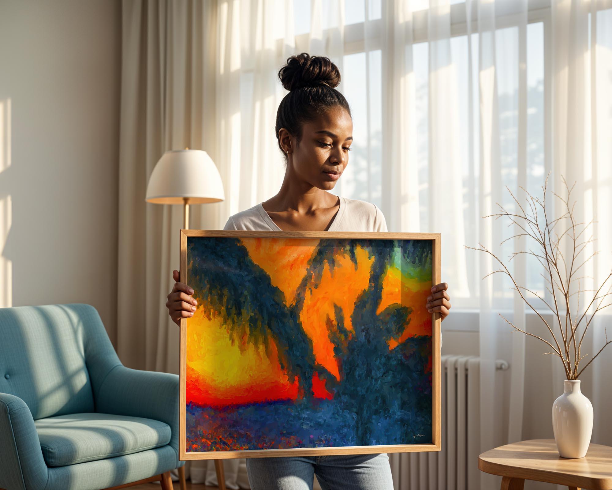 I created this artwork to capture the warmth and peace of a sunrise over the water. The bold colors reflect the feeling of starting fresh and finding calm in nature’s beauty.