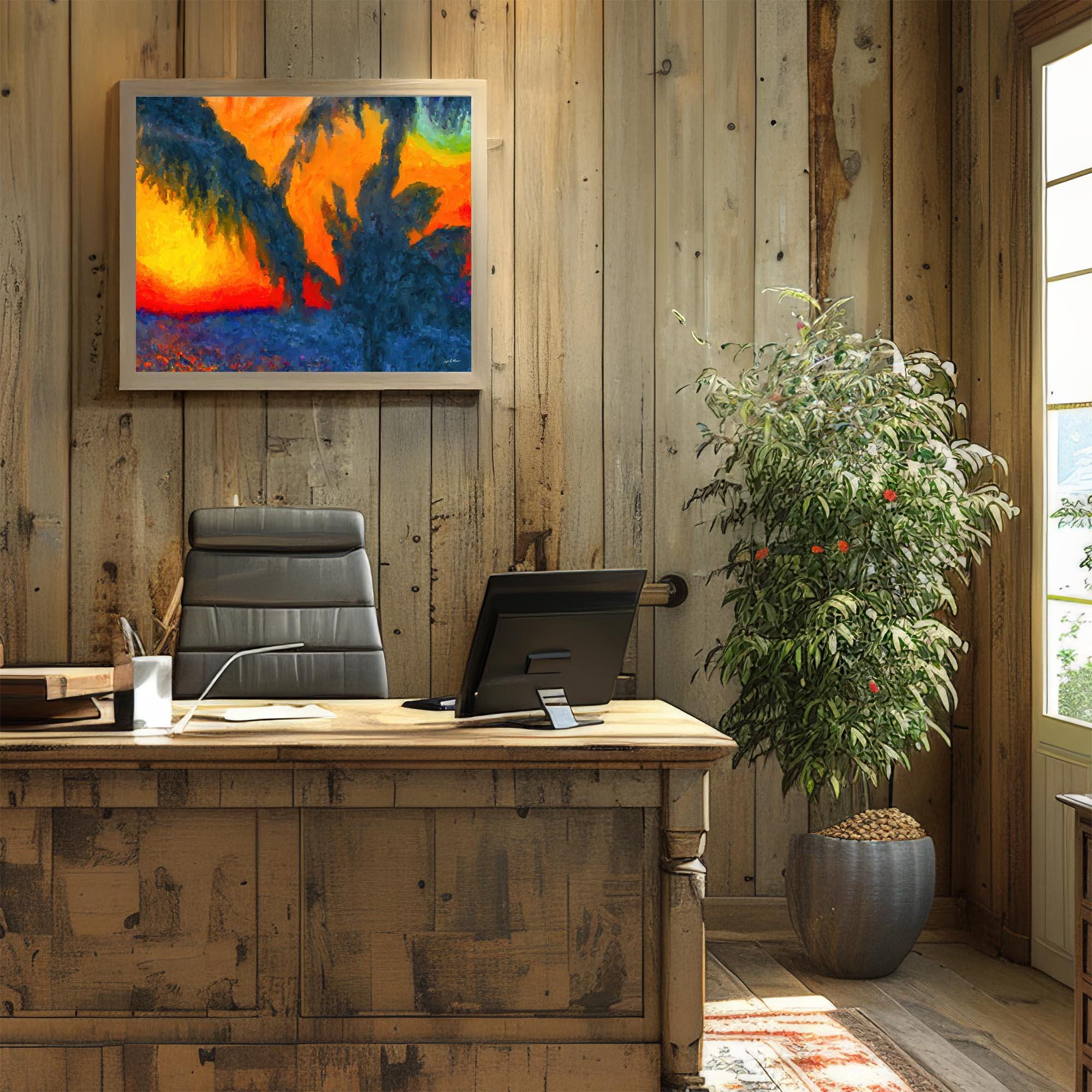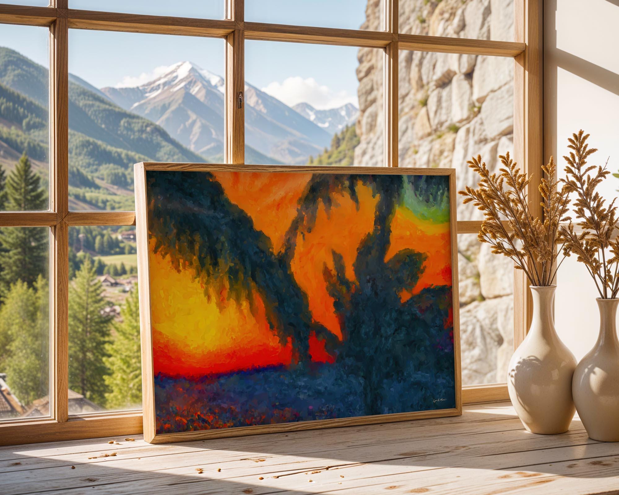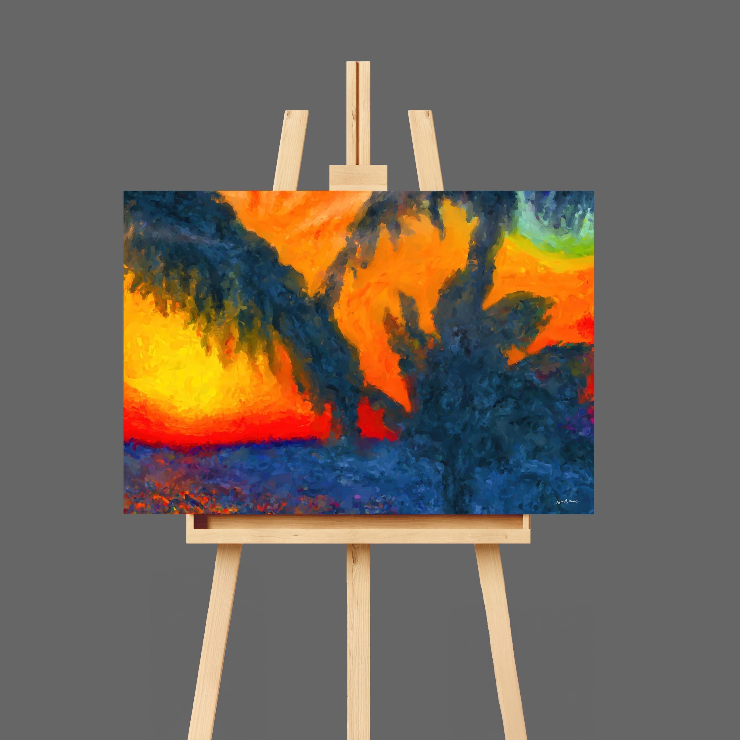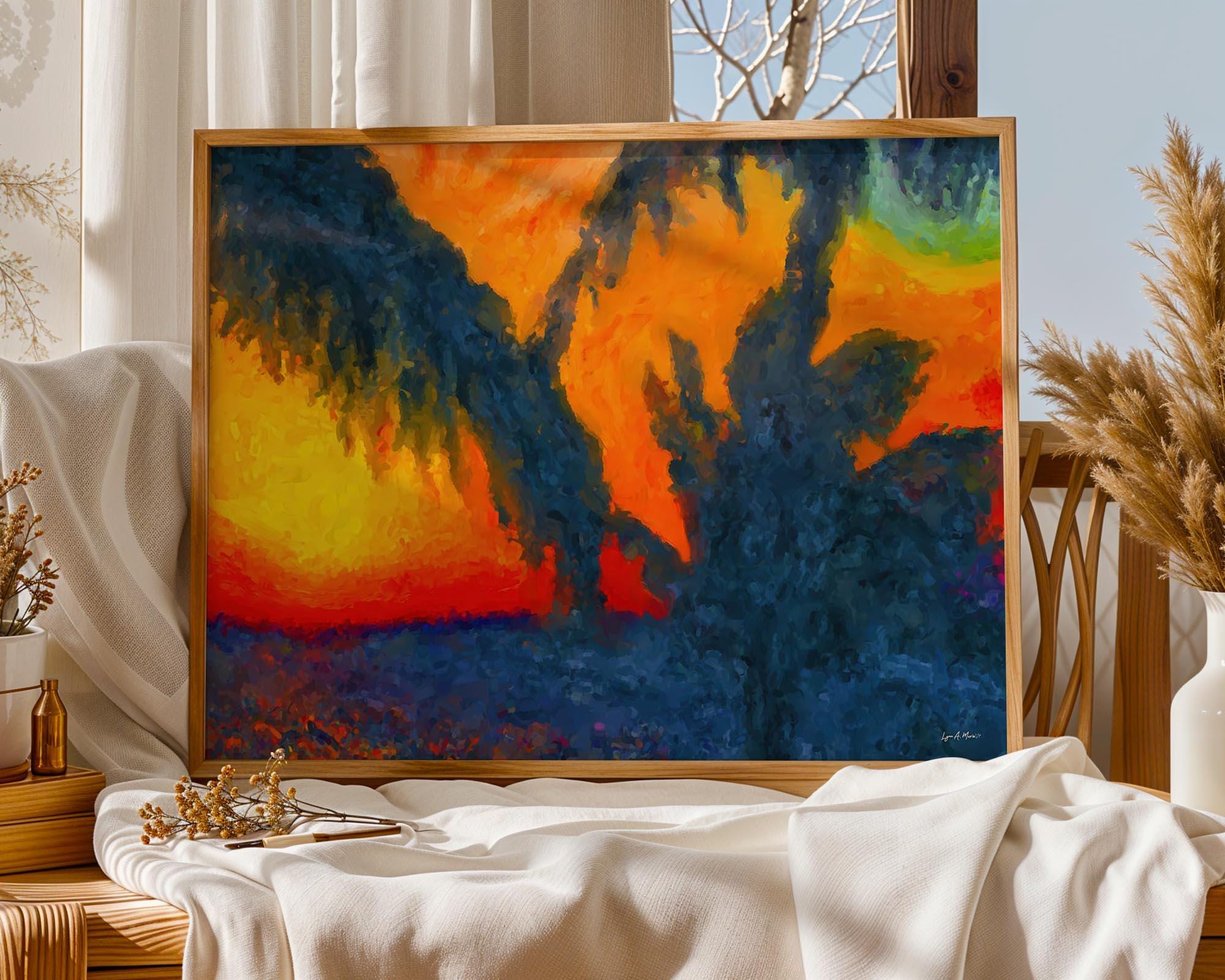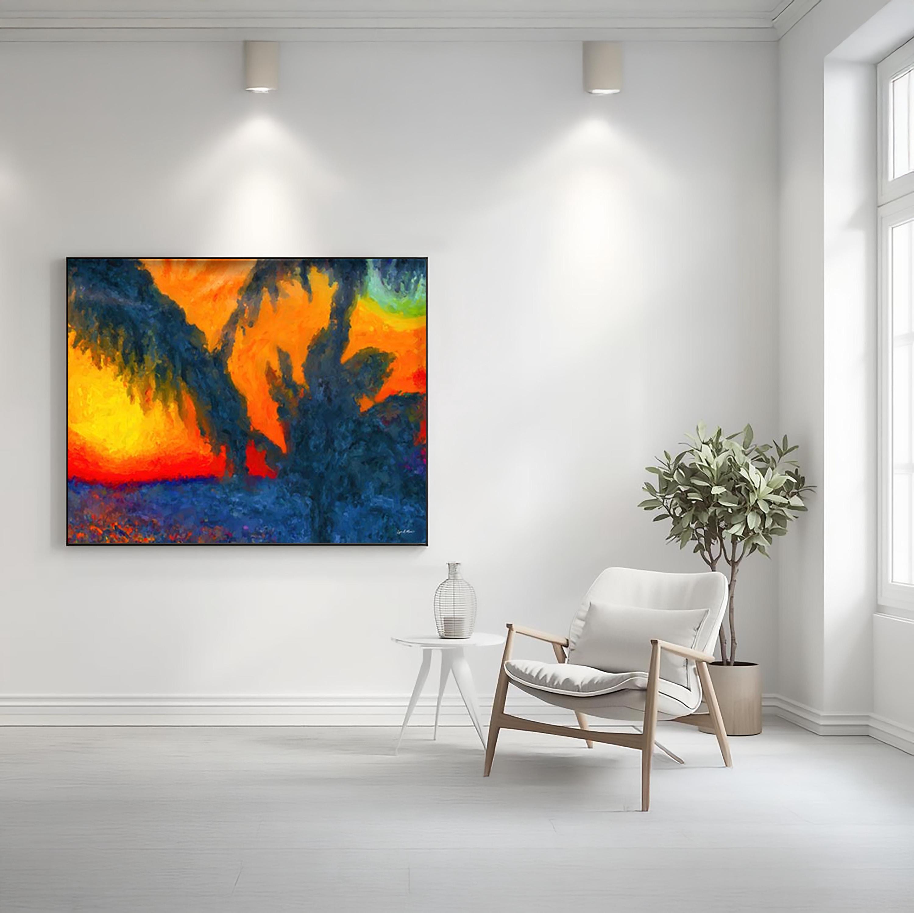 I created this artwork to capture the warmth and peace of a sunrise over the water. The bold colors reflect the feeling of starting fresh and finding calm in nature’s beauty.