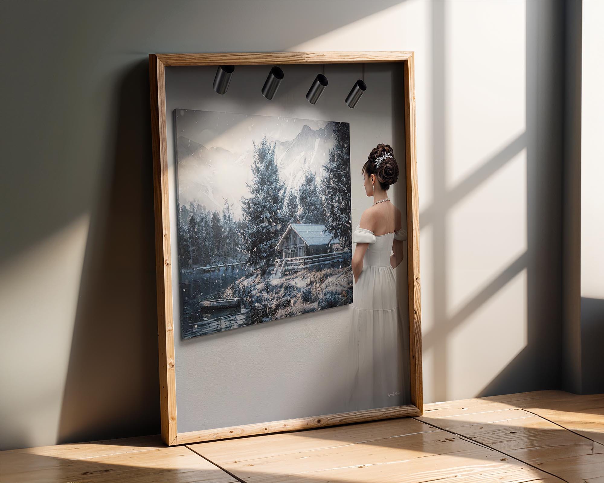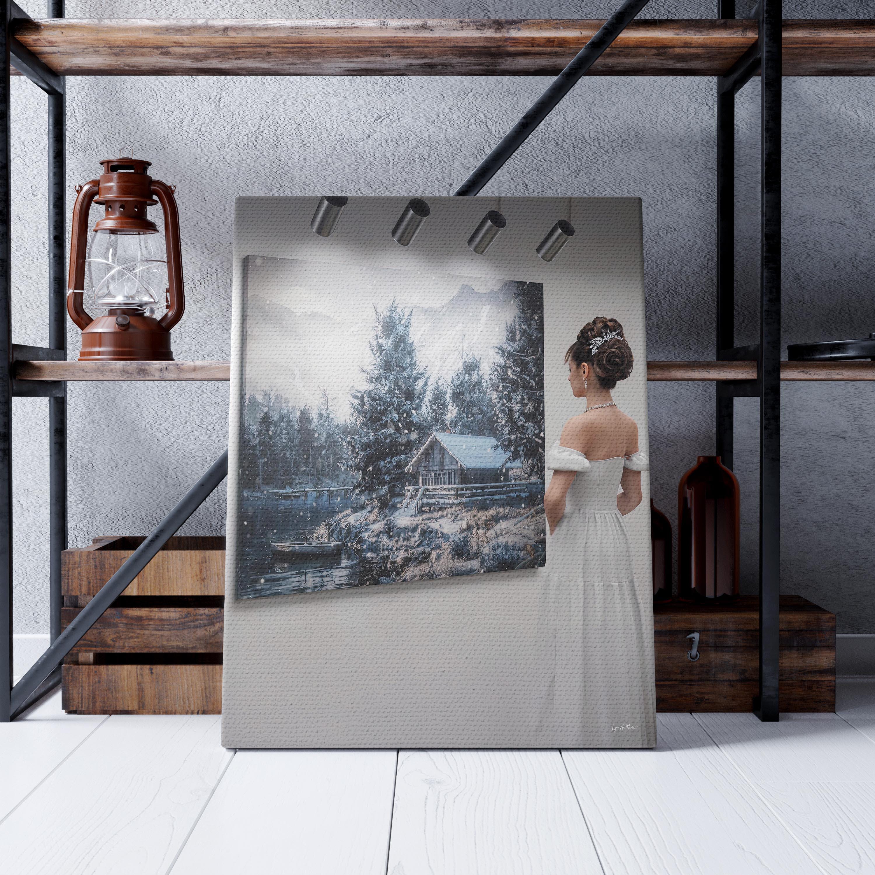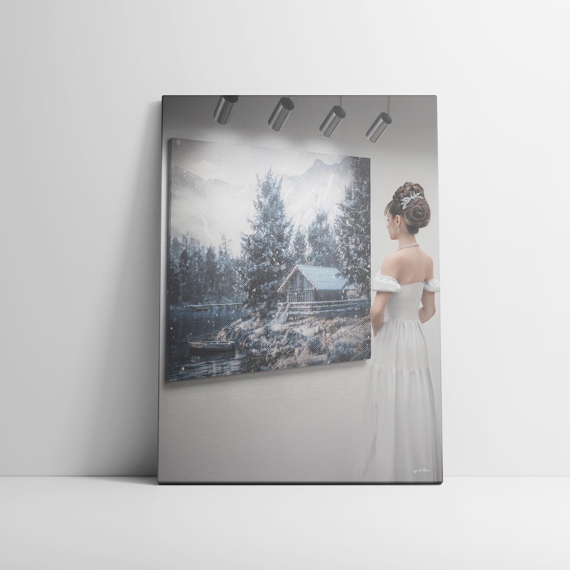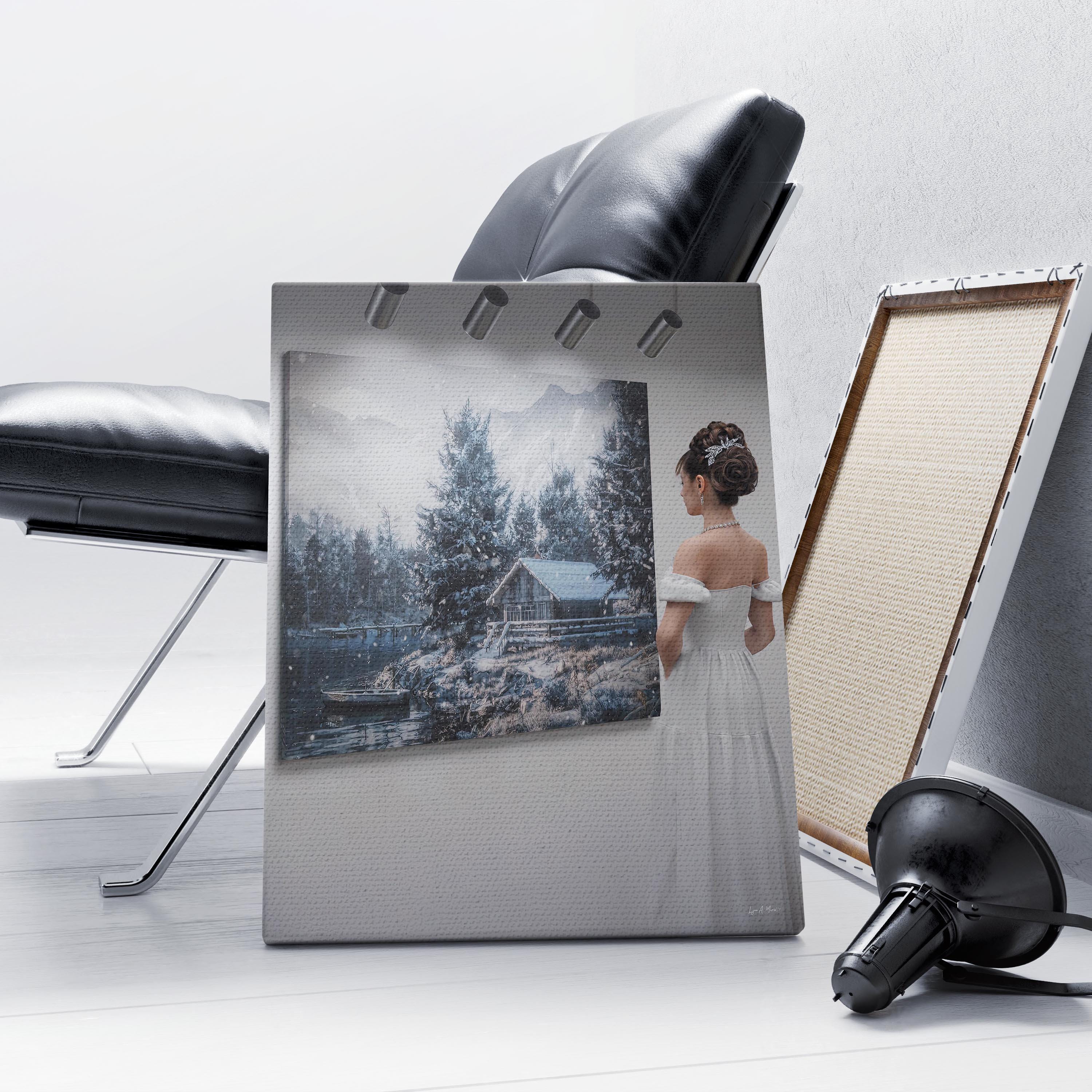 I made this to capture quiet winter peace—a snowy cabin by the lake you’d pause to admire in an art gallery, and want to bring that calm home.