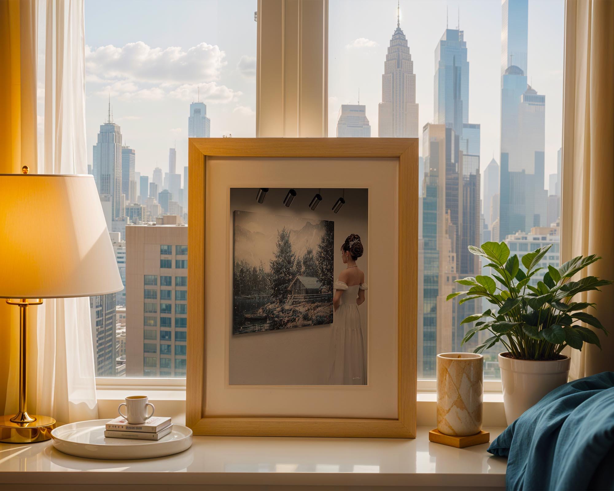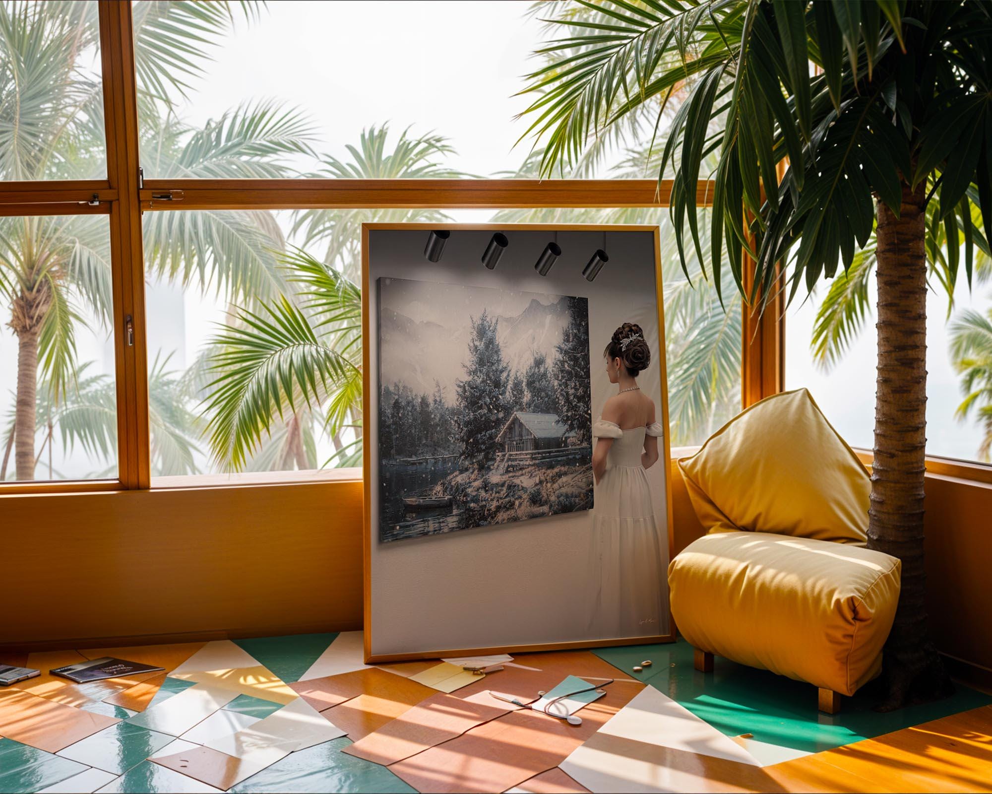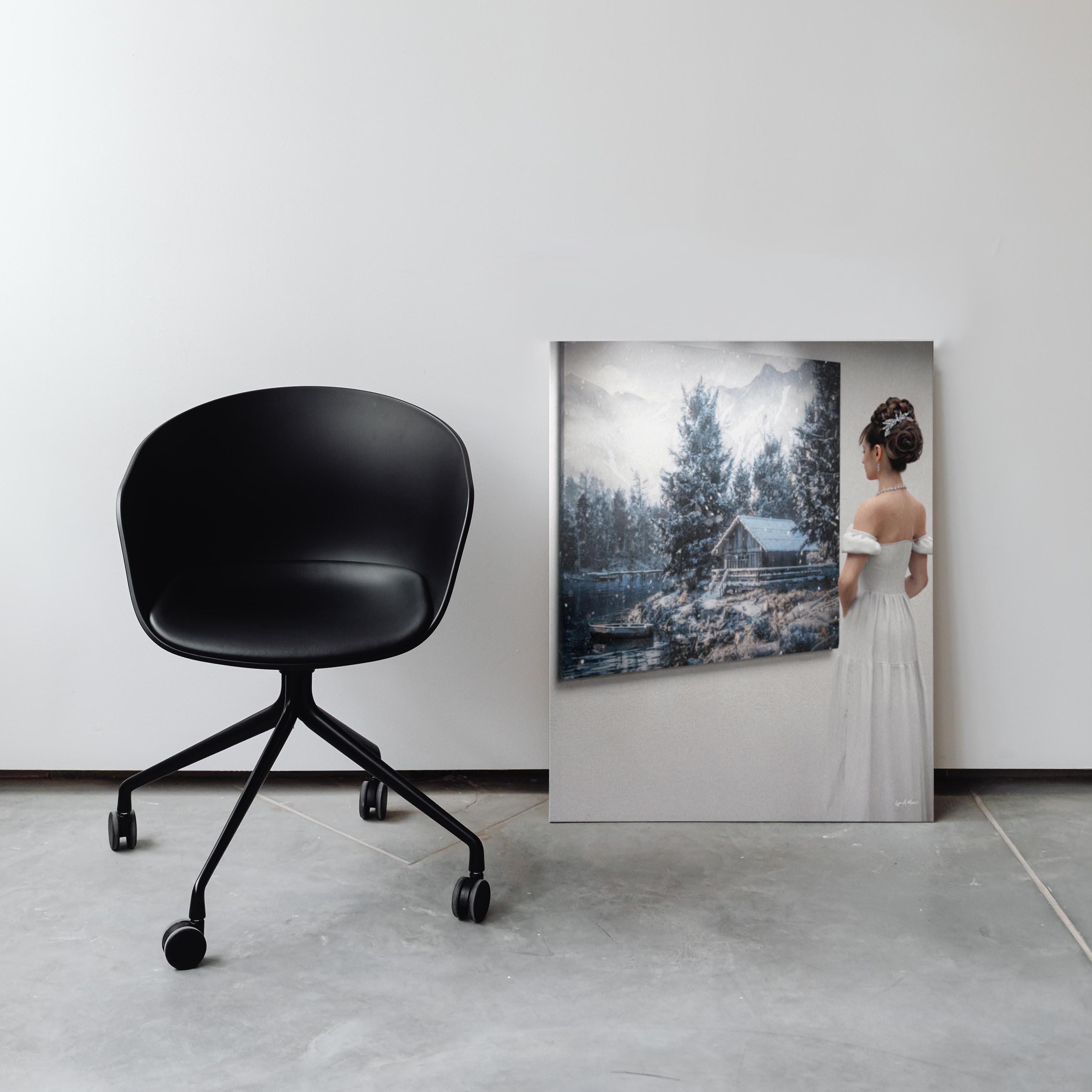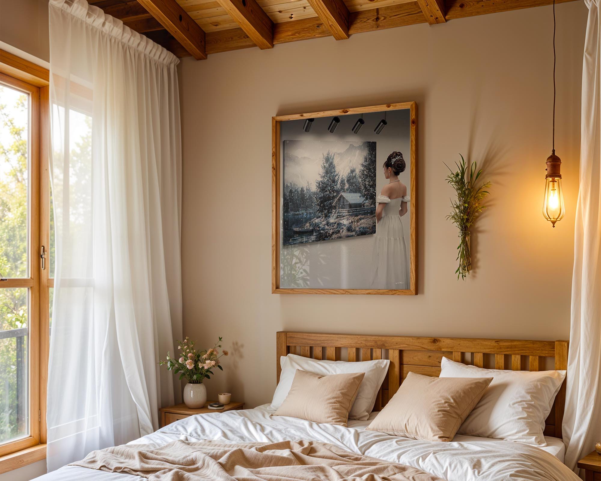I made this to capture quiet winter peace—a snowy cabin by the lake you’d pause to admire in an art gallery, and want to bring that calm home.