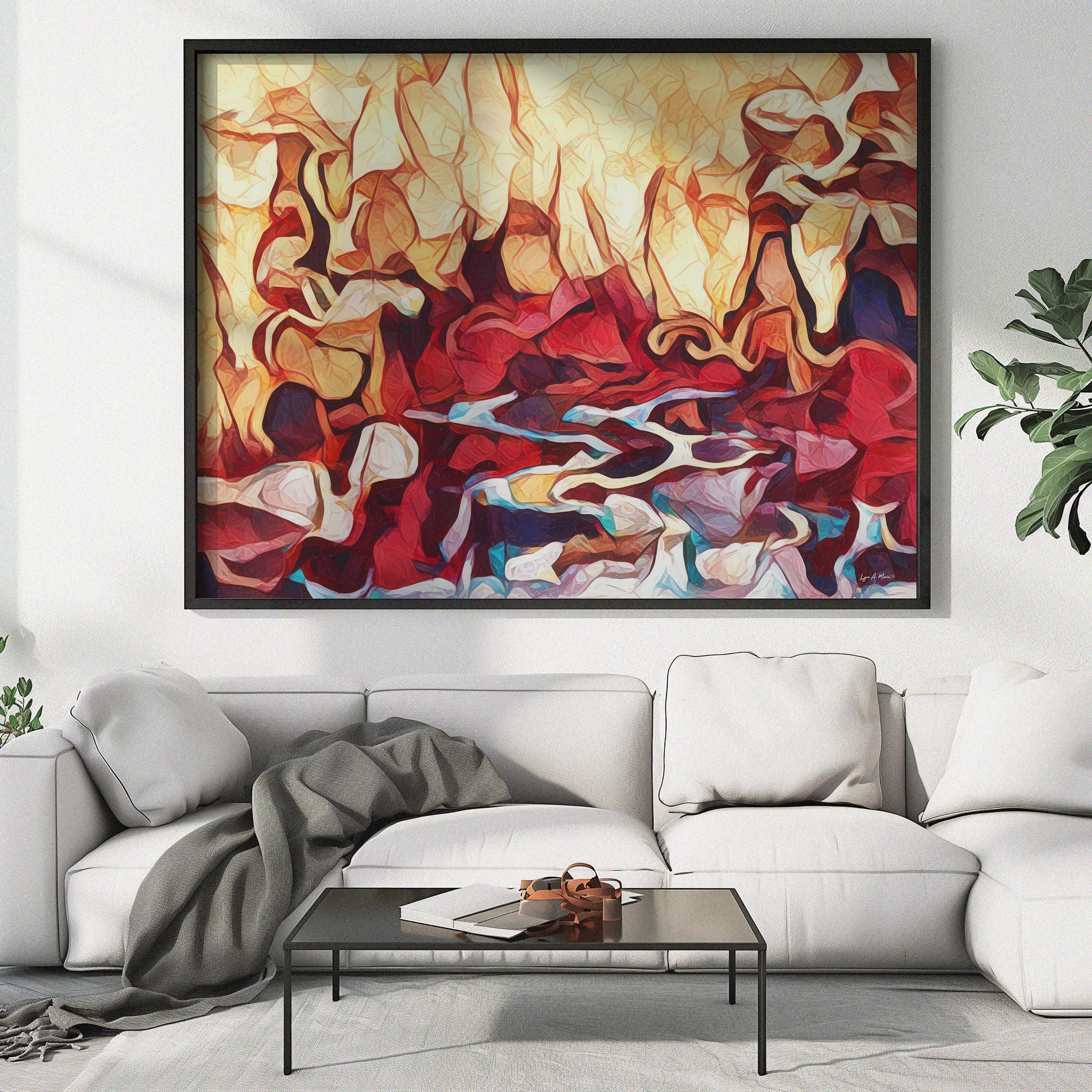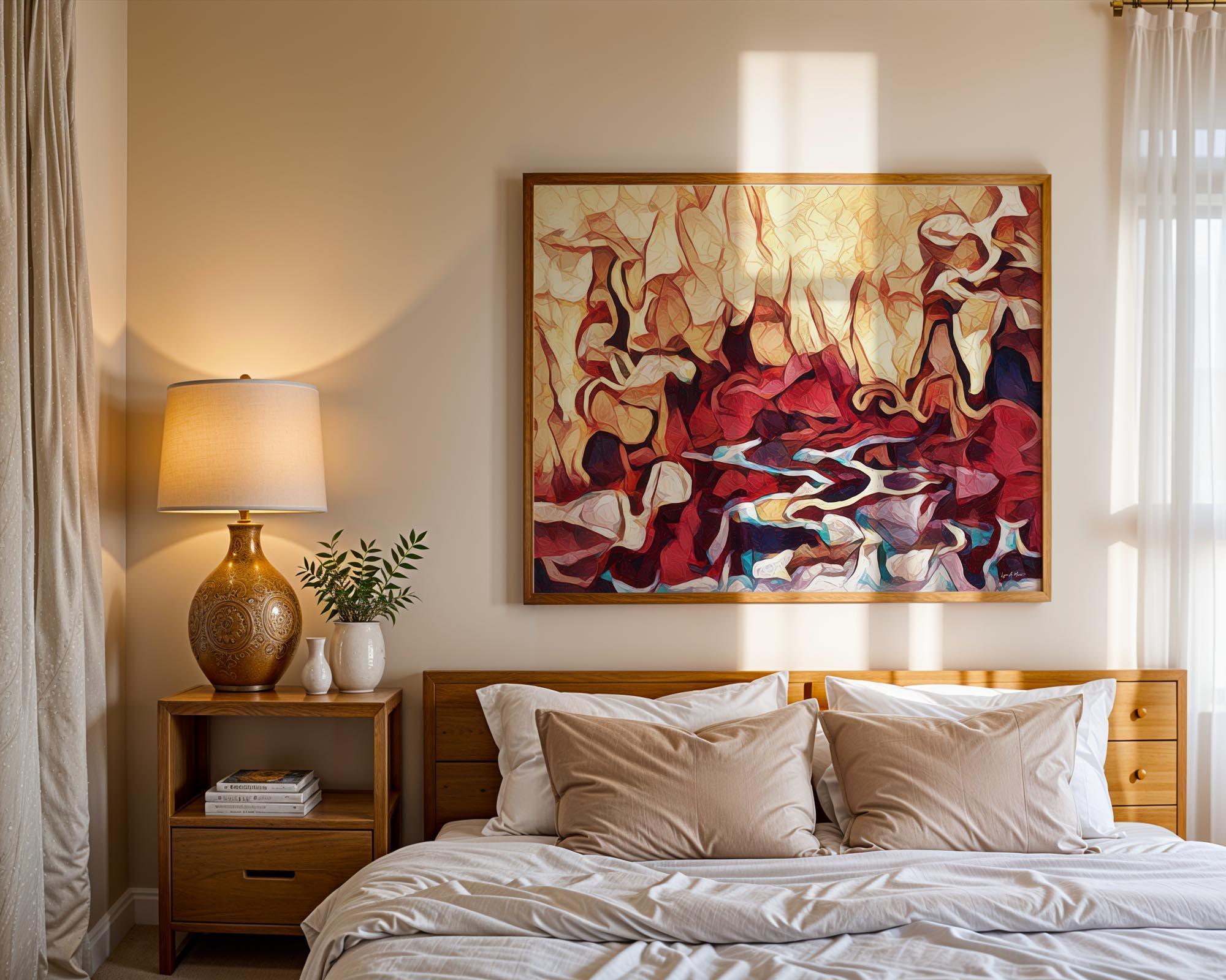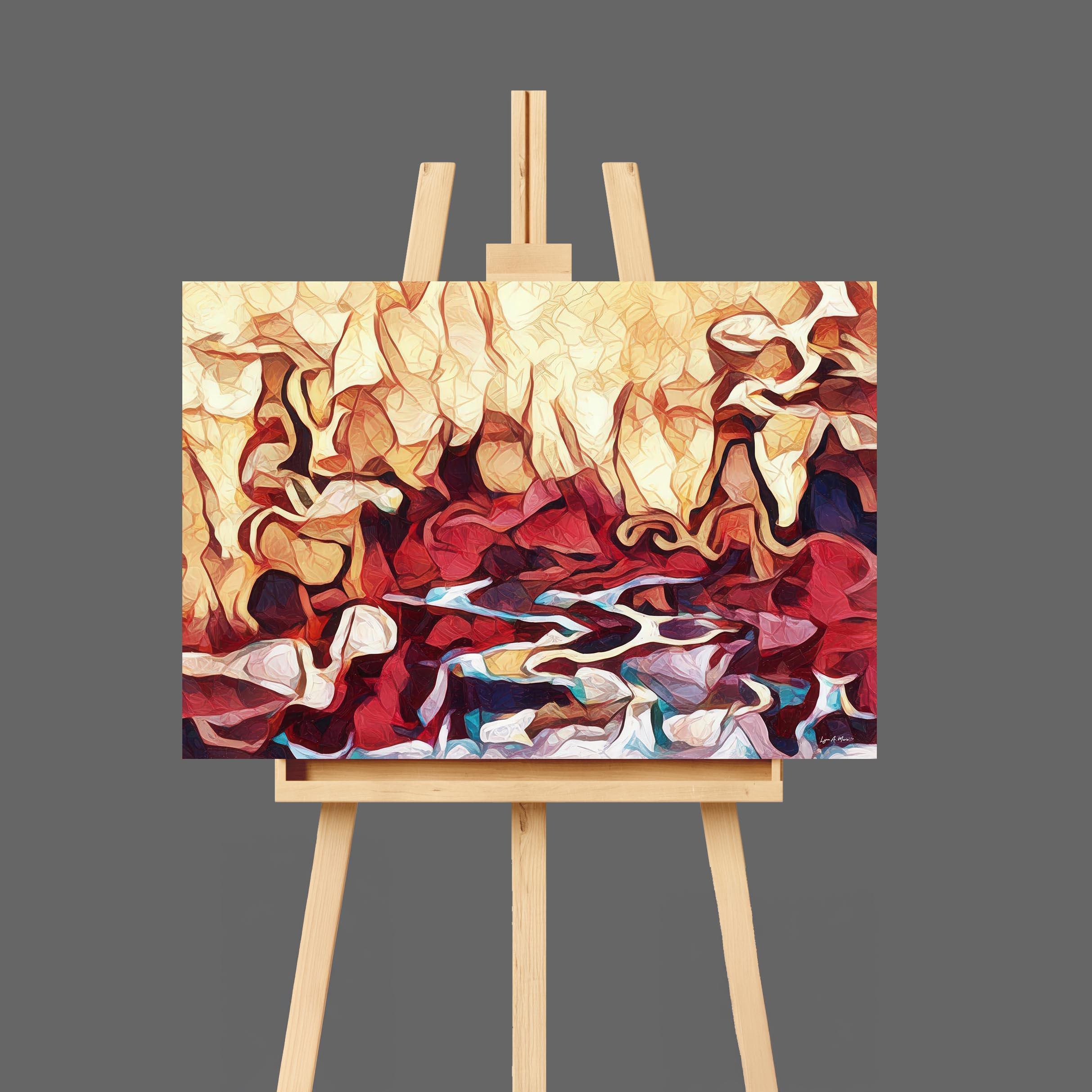 I created this modern colorful abstract artwork to capture how water feels more than how it looks — full of movement, color, and emotion. The flowing reds and golds remind me of how nature constantly changes and connects everything, even in chaos. It’s about energy, reflection, and letting go.