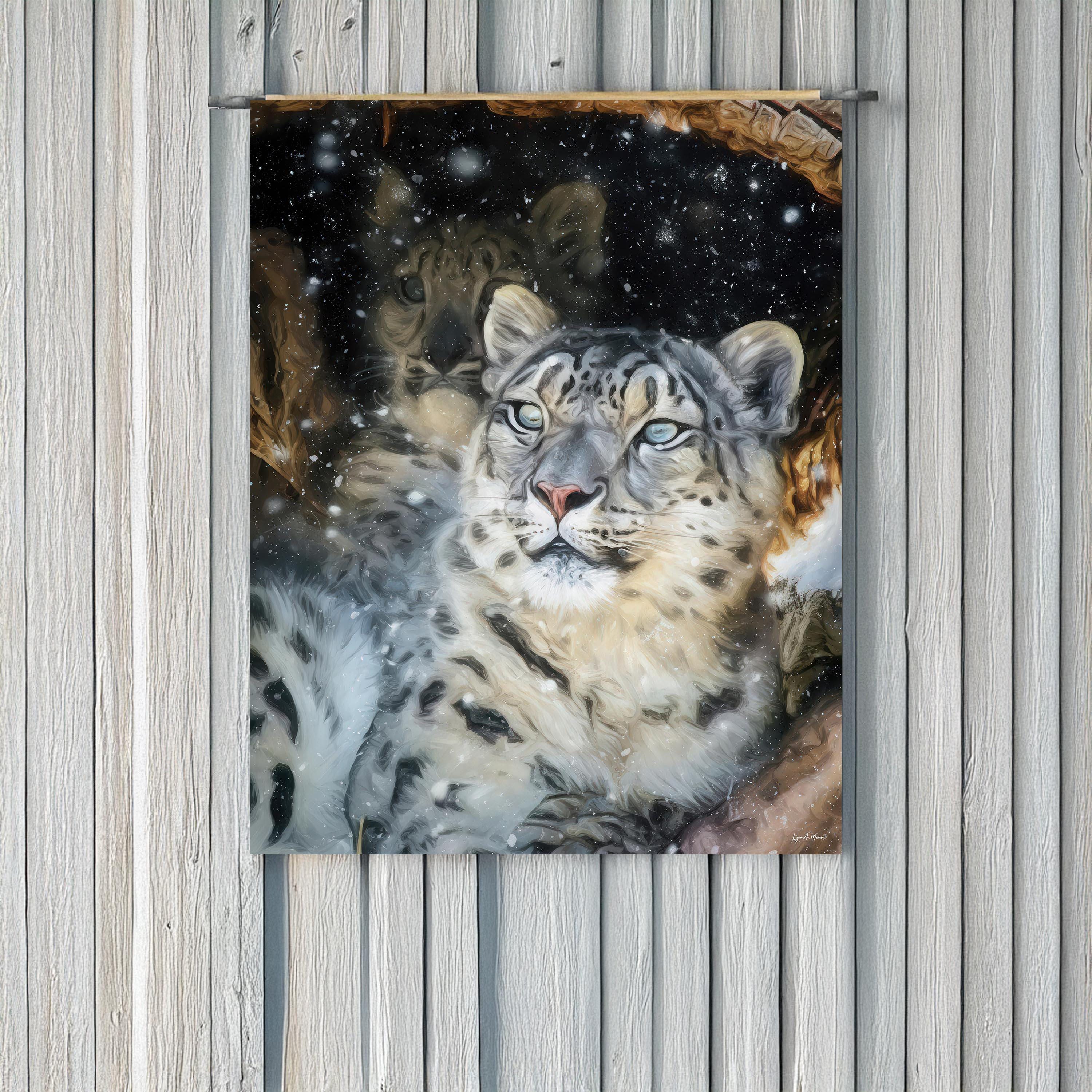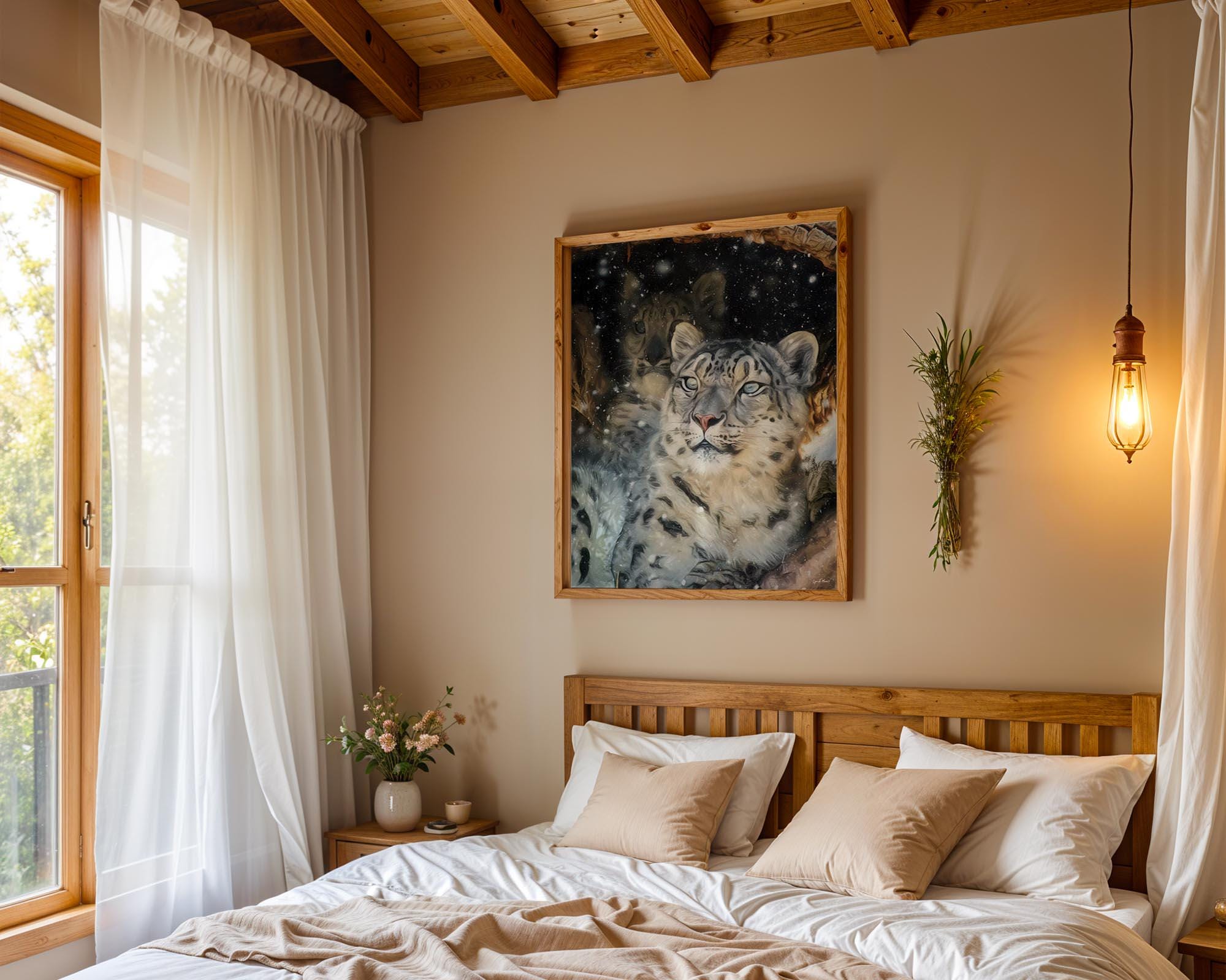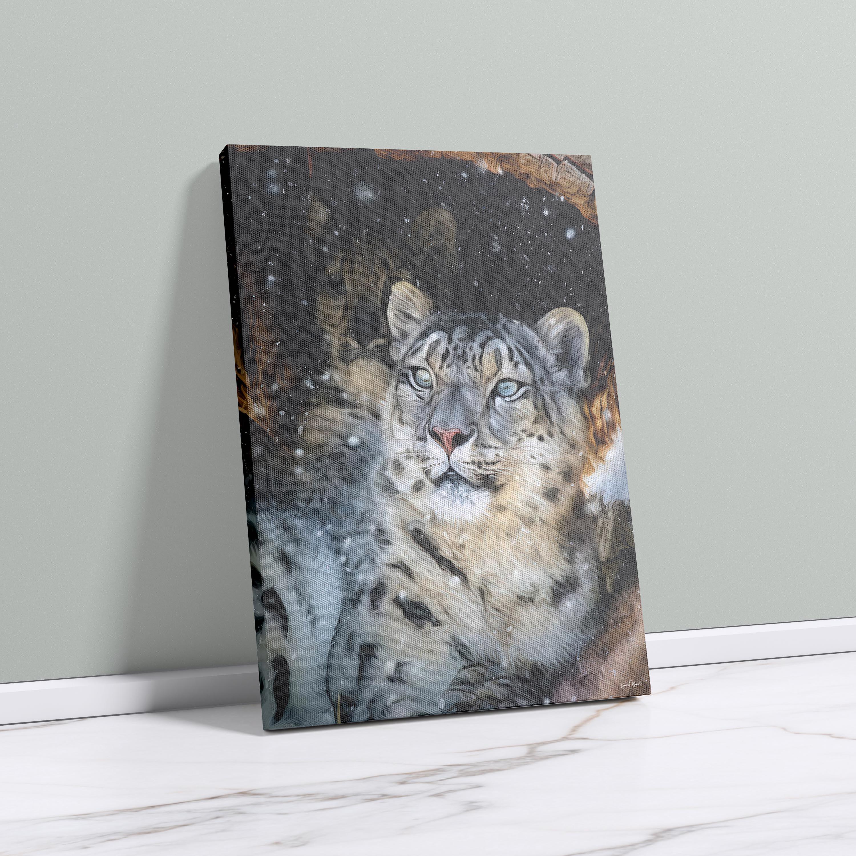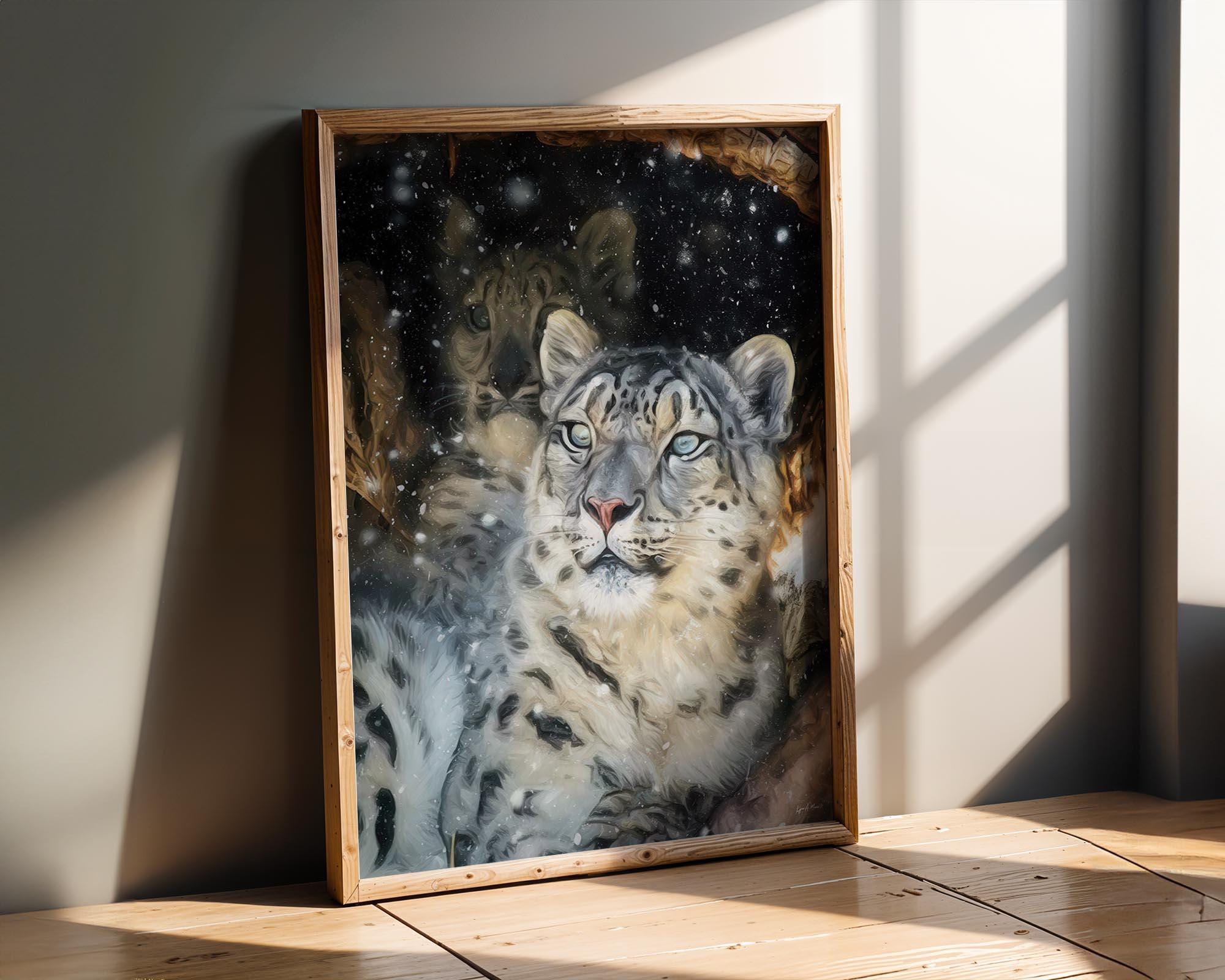 This piece celebrates the rare beauty of an endangered snow leopard and her young. The calm, watchful gaze and falling snow highlight both their strength and their fragile future. I hope it brings a quiet reminder to care for the wild places they call home.