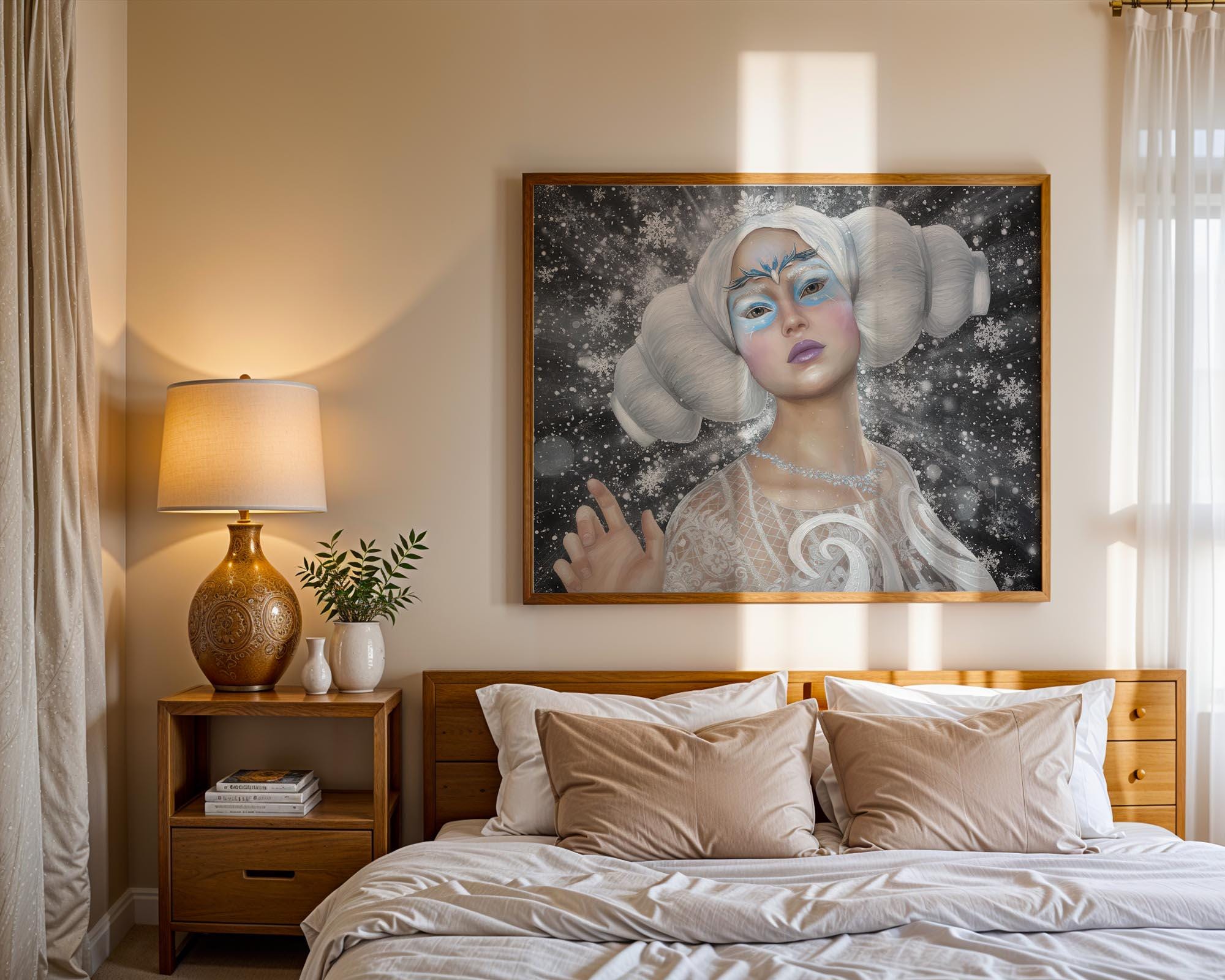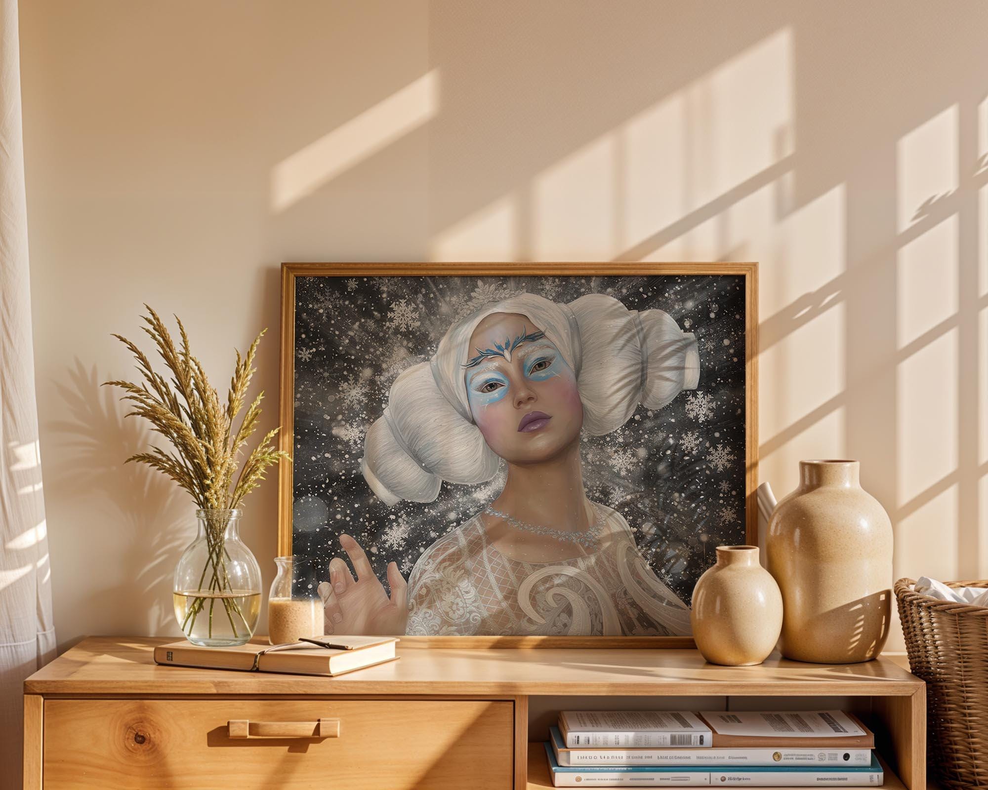I made this to capture the quiet magic of winter—cool light, falling snow, and a calm, regal strength.