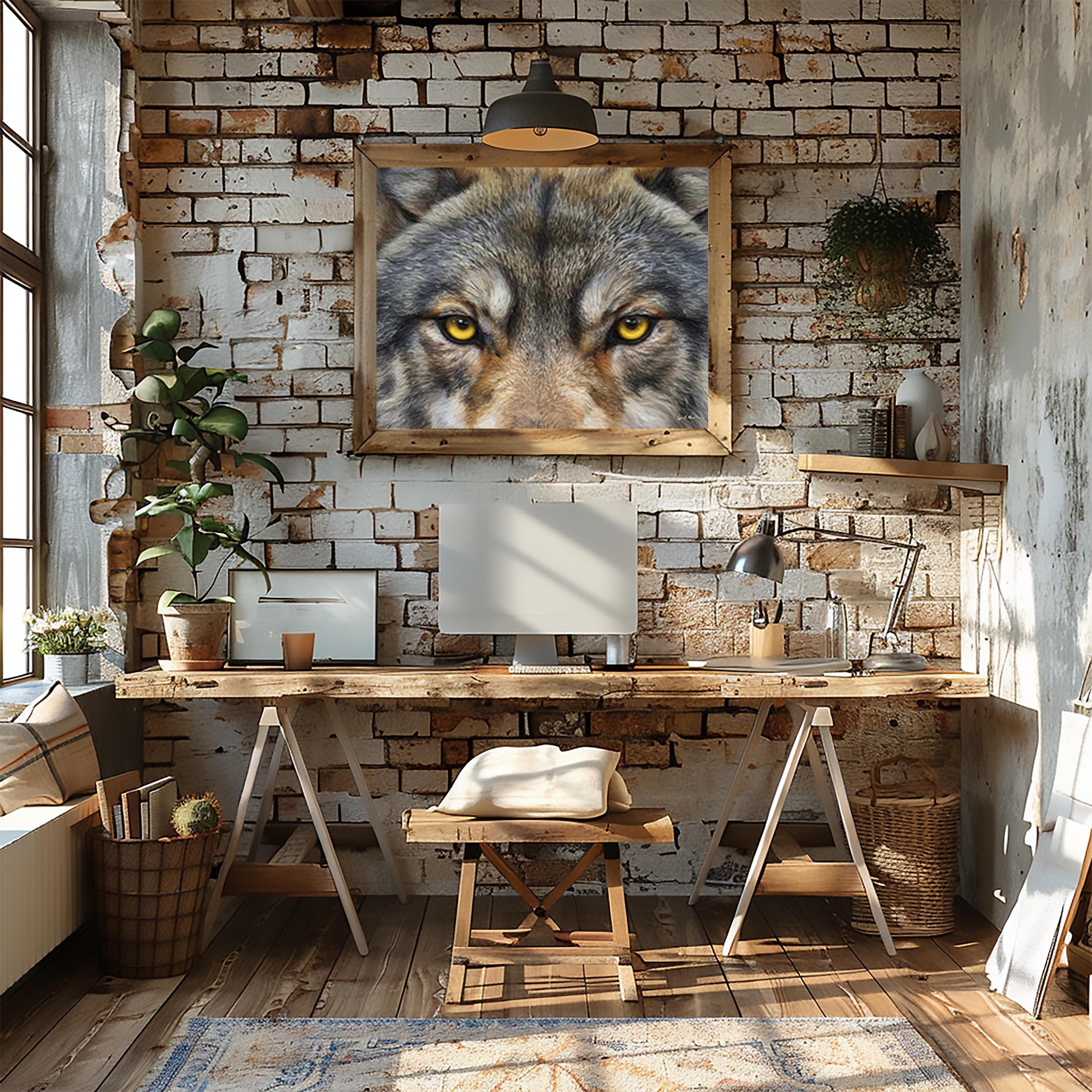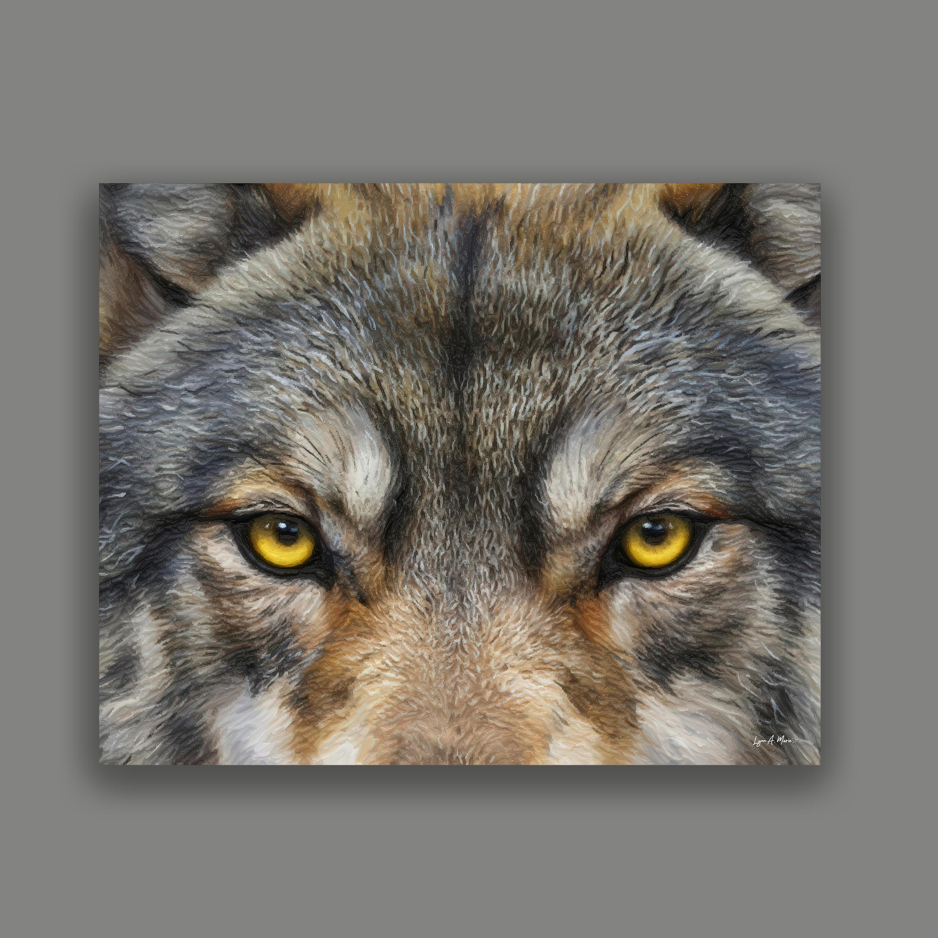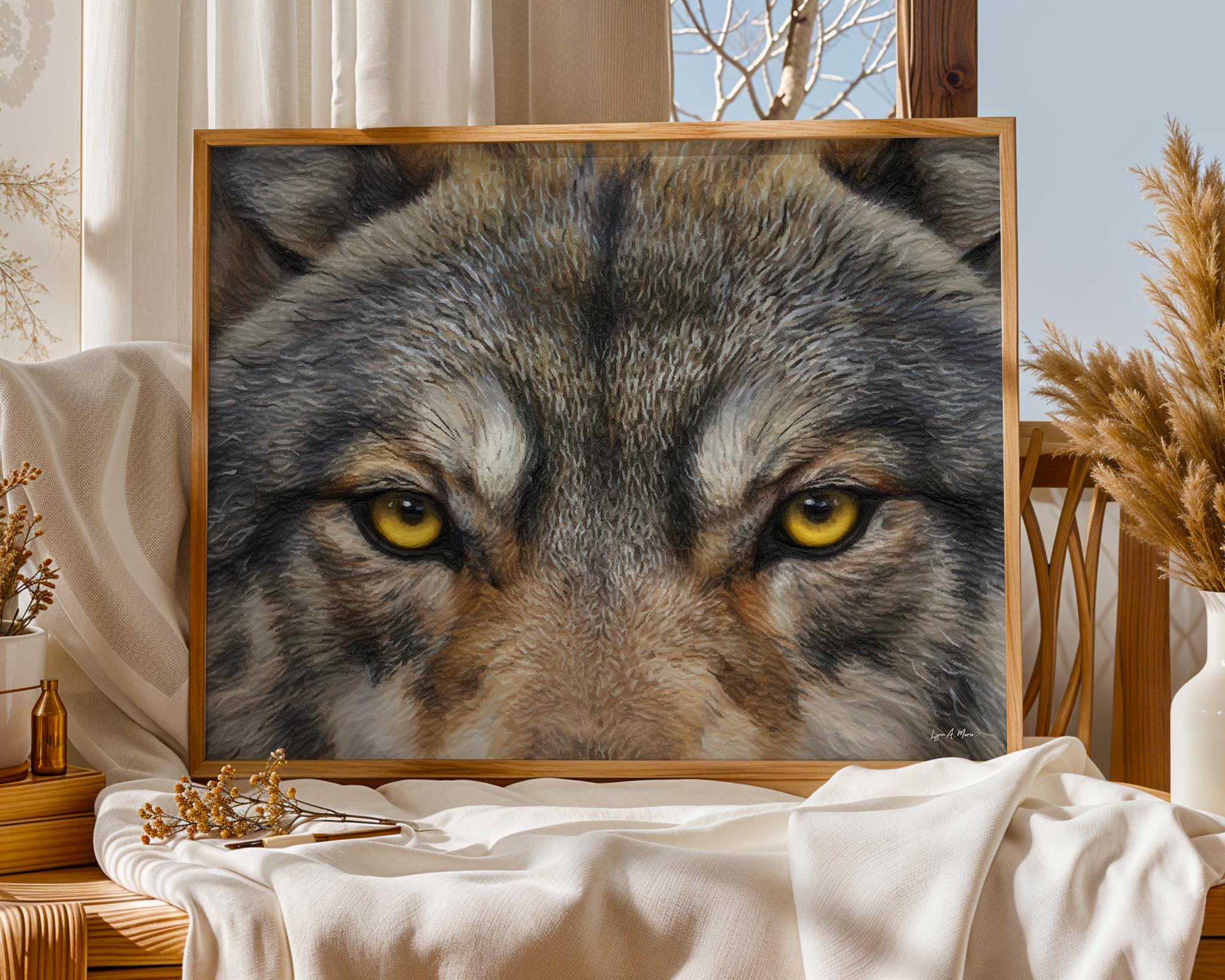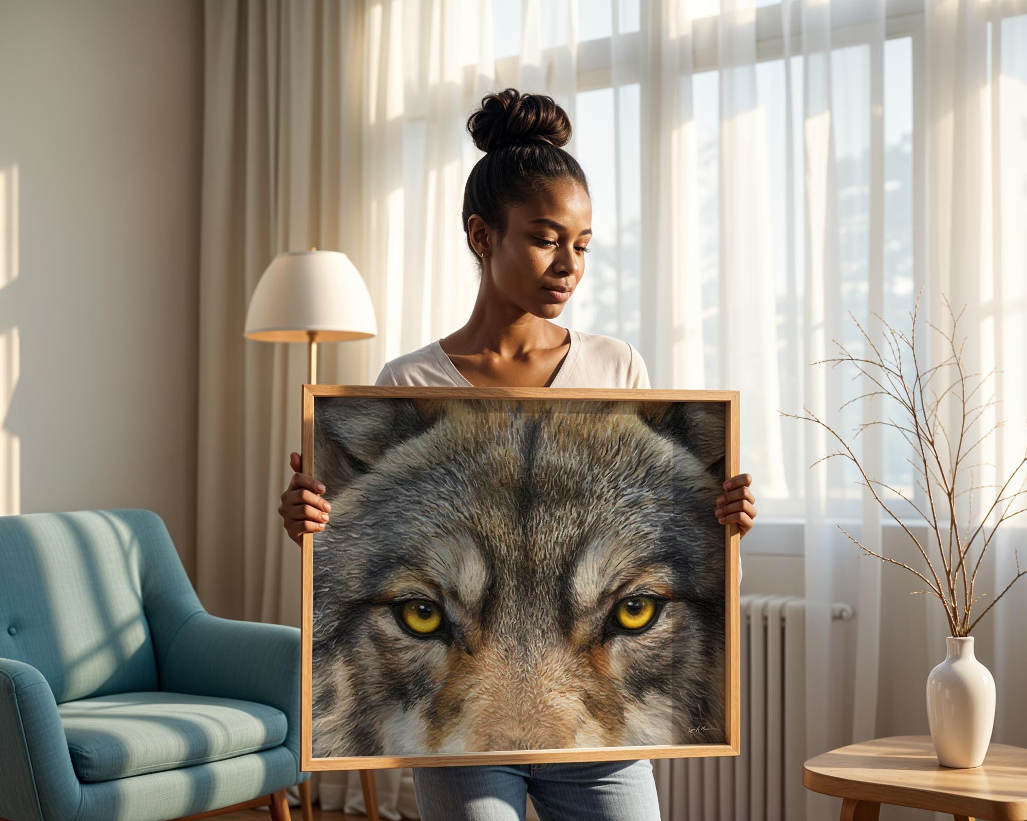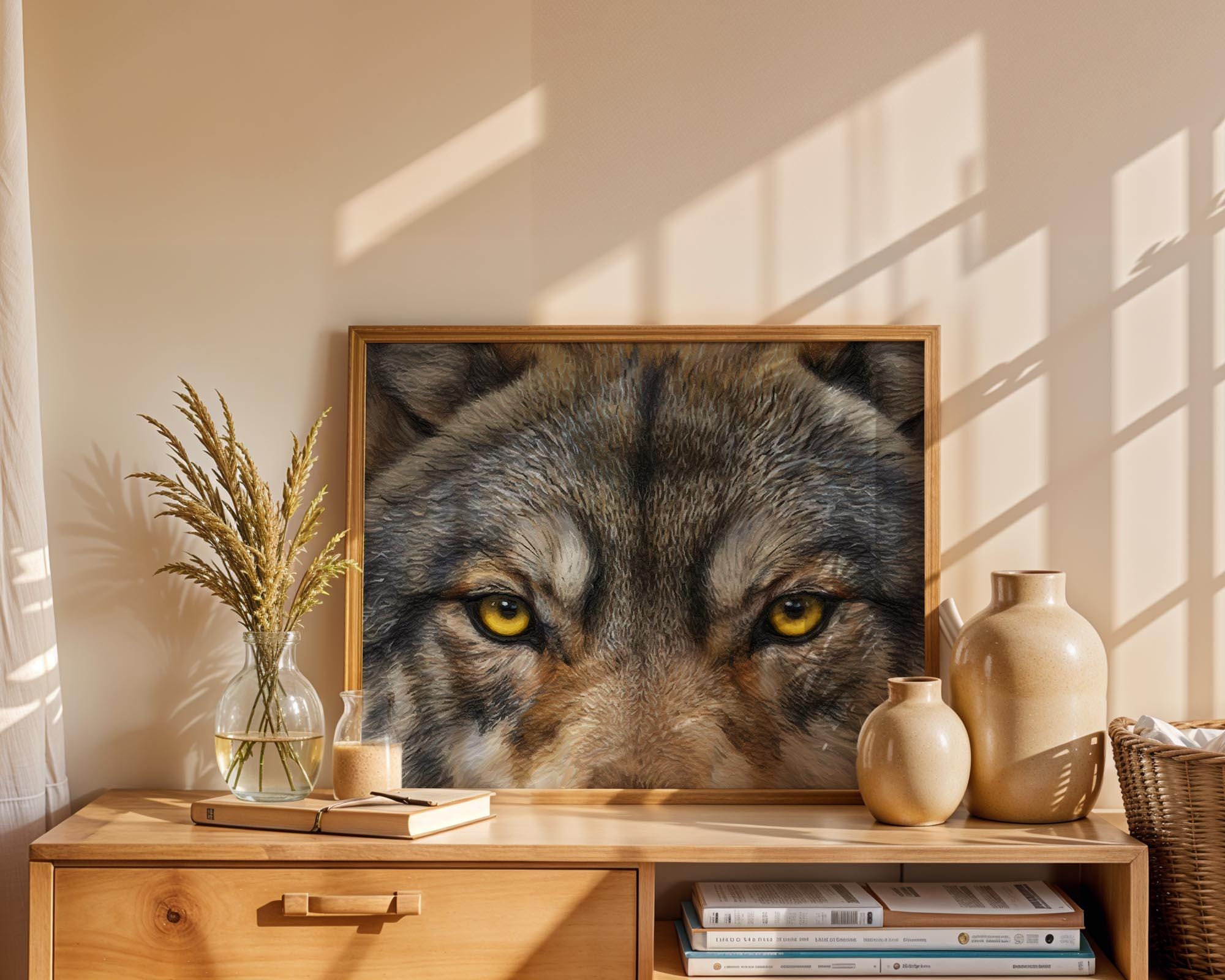 I created this to capture the wolf’s unblinking spirit—strength, focus, and quiet intelligence. The close, golden gaze invites you to meet the wild eye-to-eye and feel that raw, steady power.