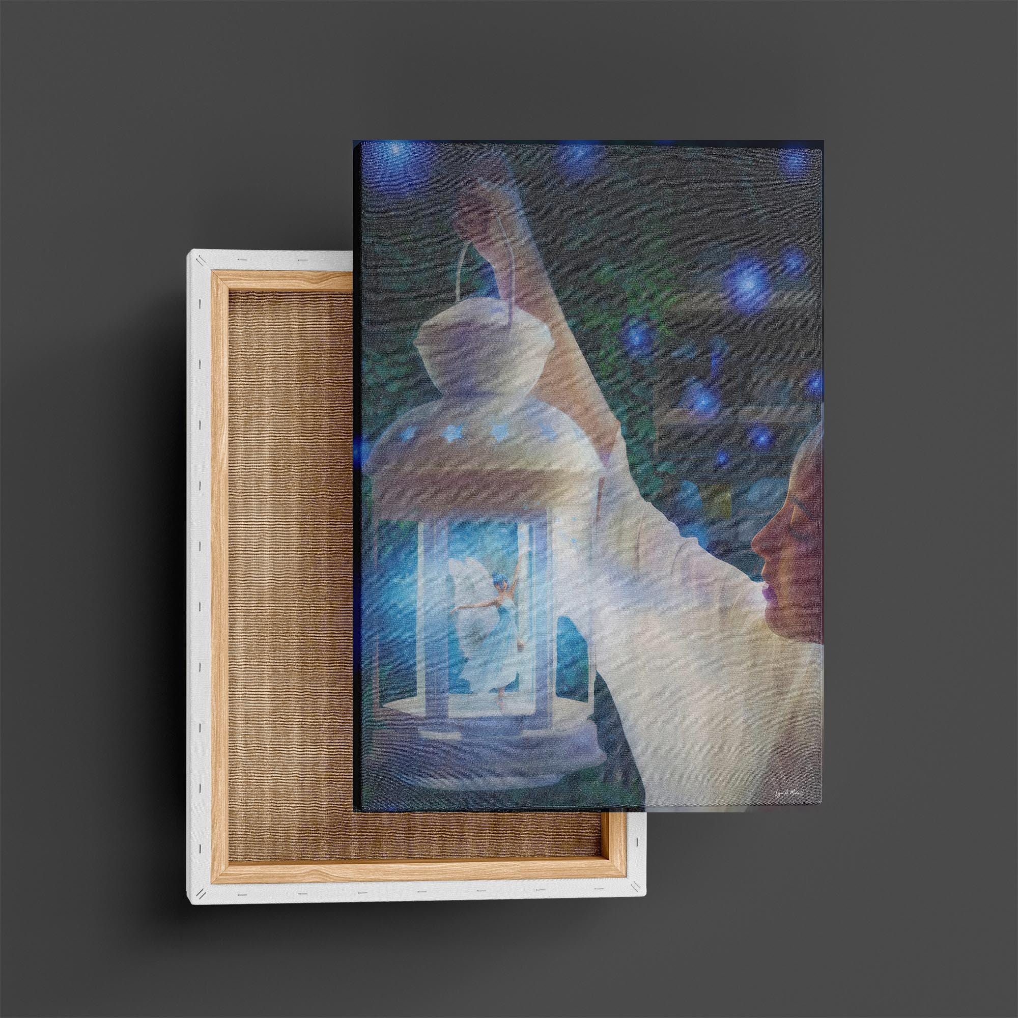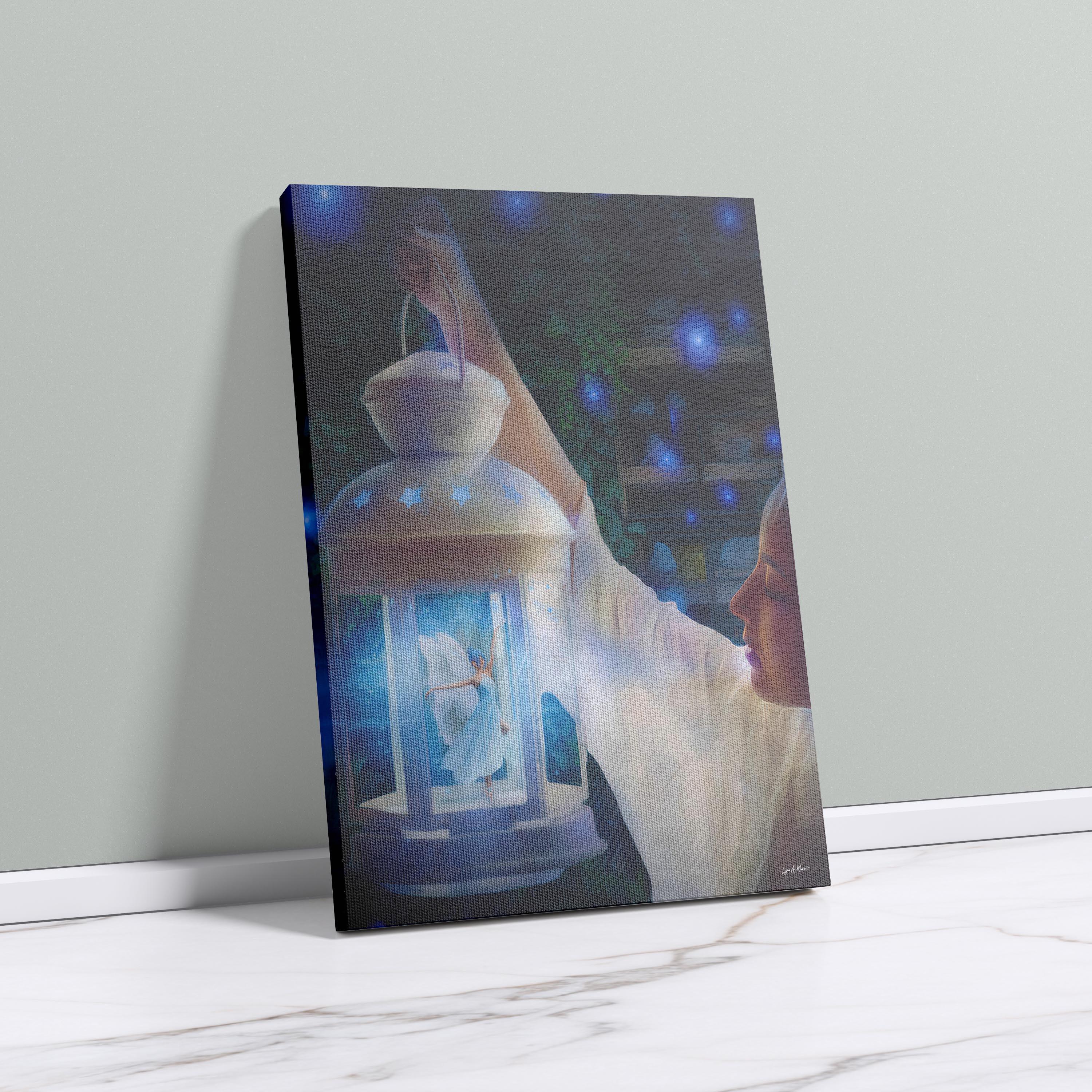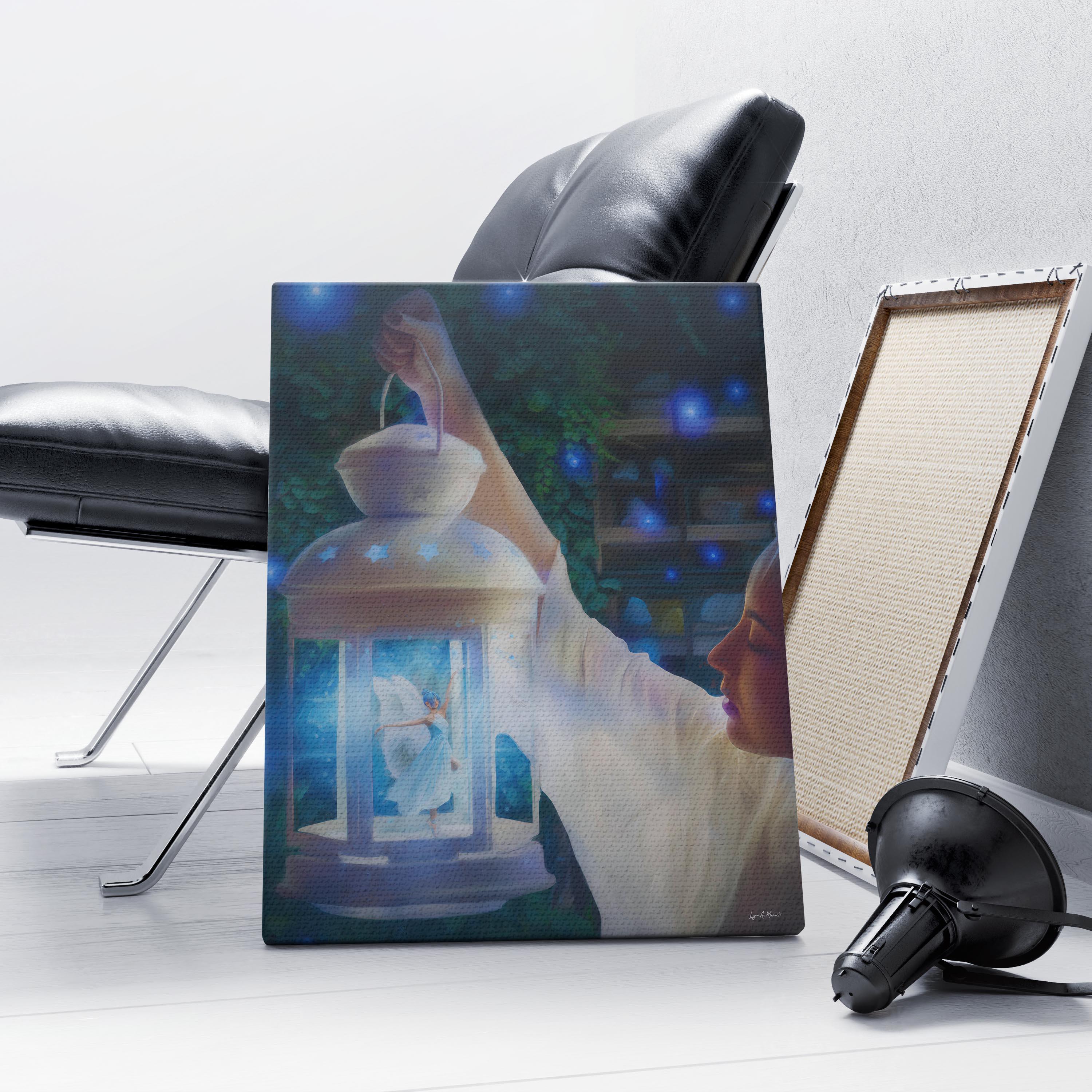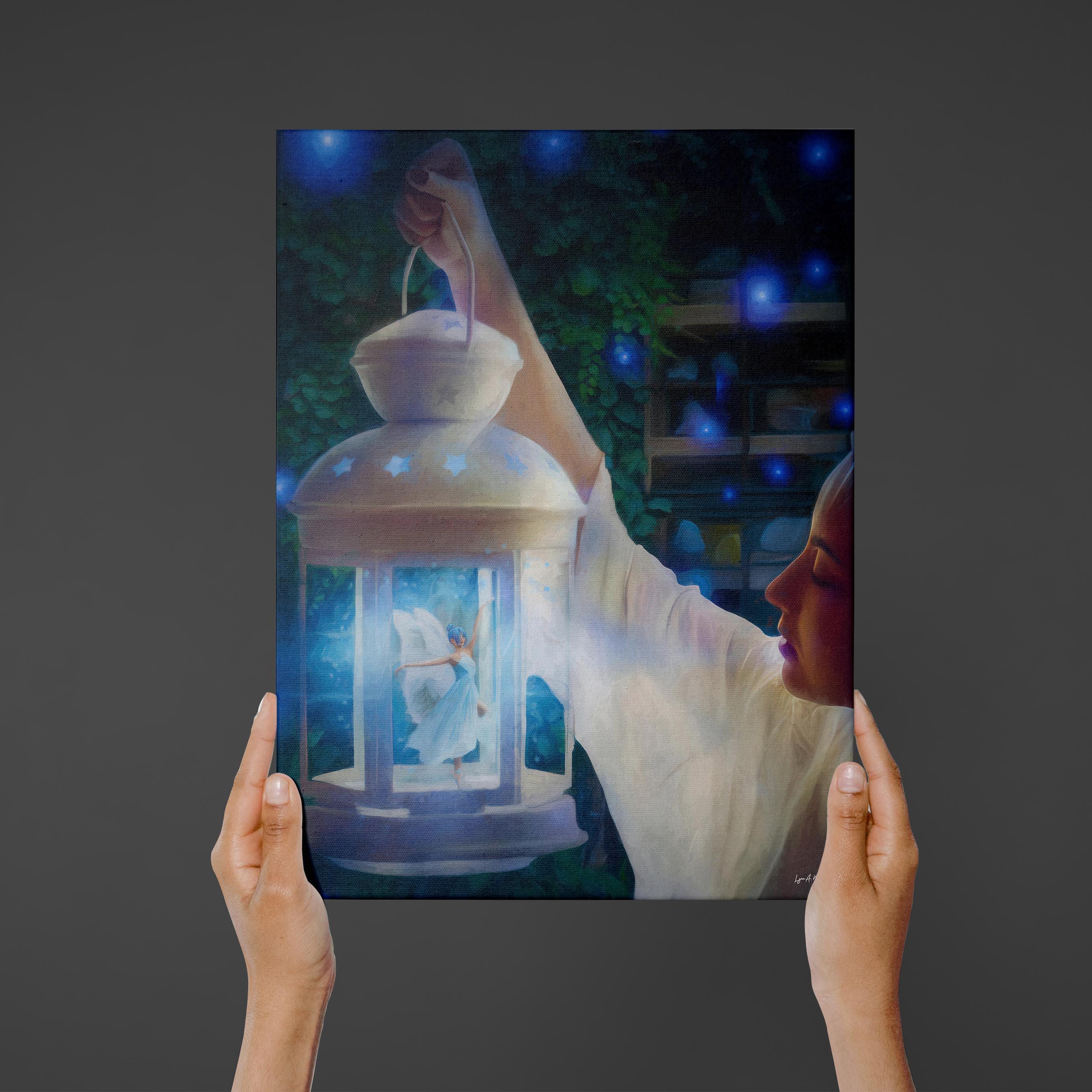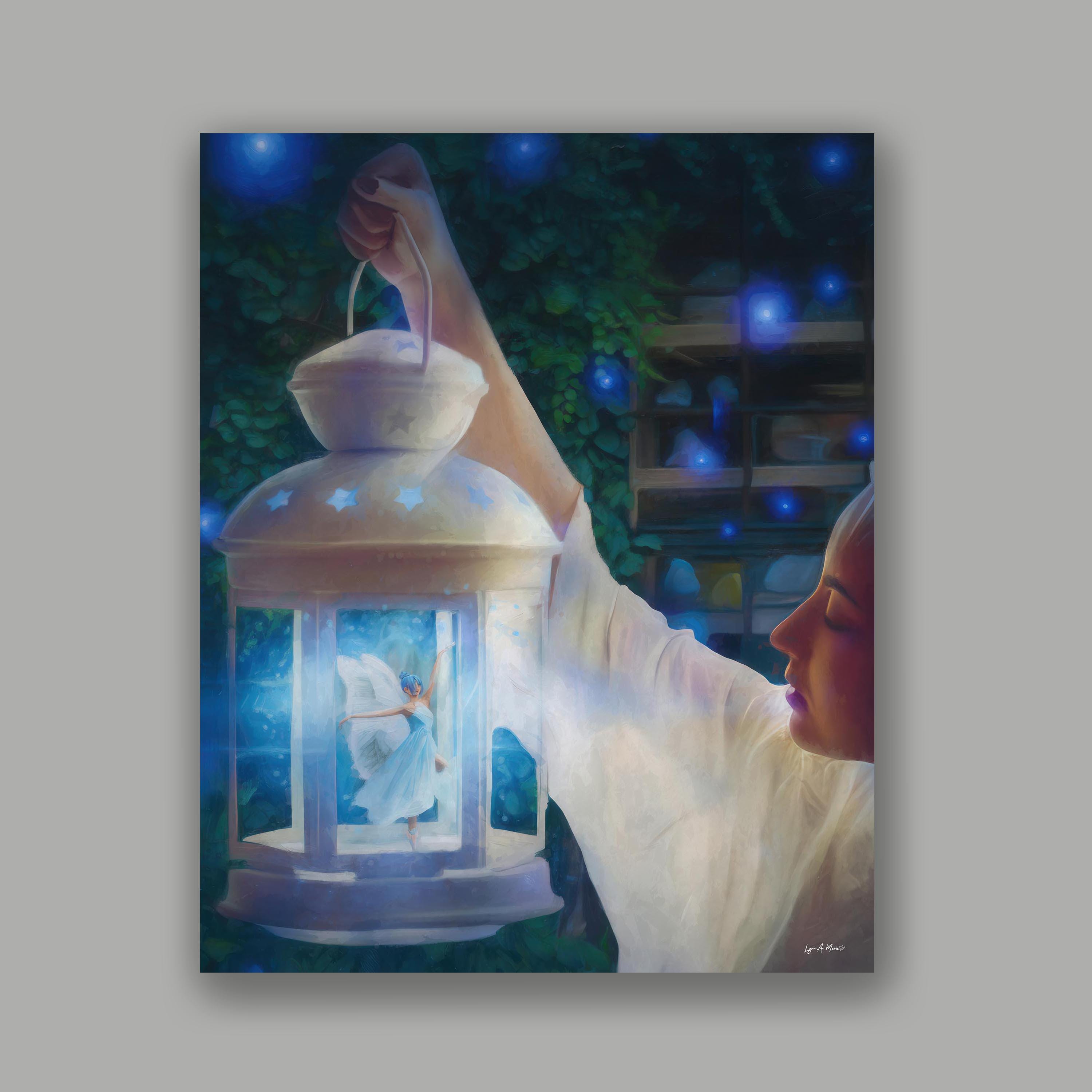 I created this airy lantern scene to bring a touch of fantasy wall art and magical decor into everyday spaces. The glowing fairy adds warmth and whimsy, making this lantern print perfect for cottagecore art and peaceful night scene art. Digitally created, this signed art is not AI generated and crafted for lovers of whimsical art and blue fantasy. This fantasy art print reflects my love for soft light and storytelling.
